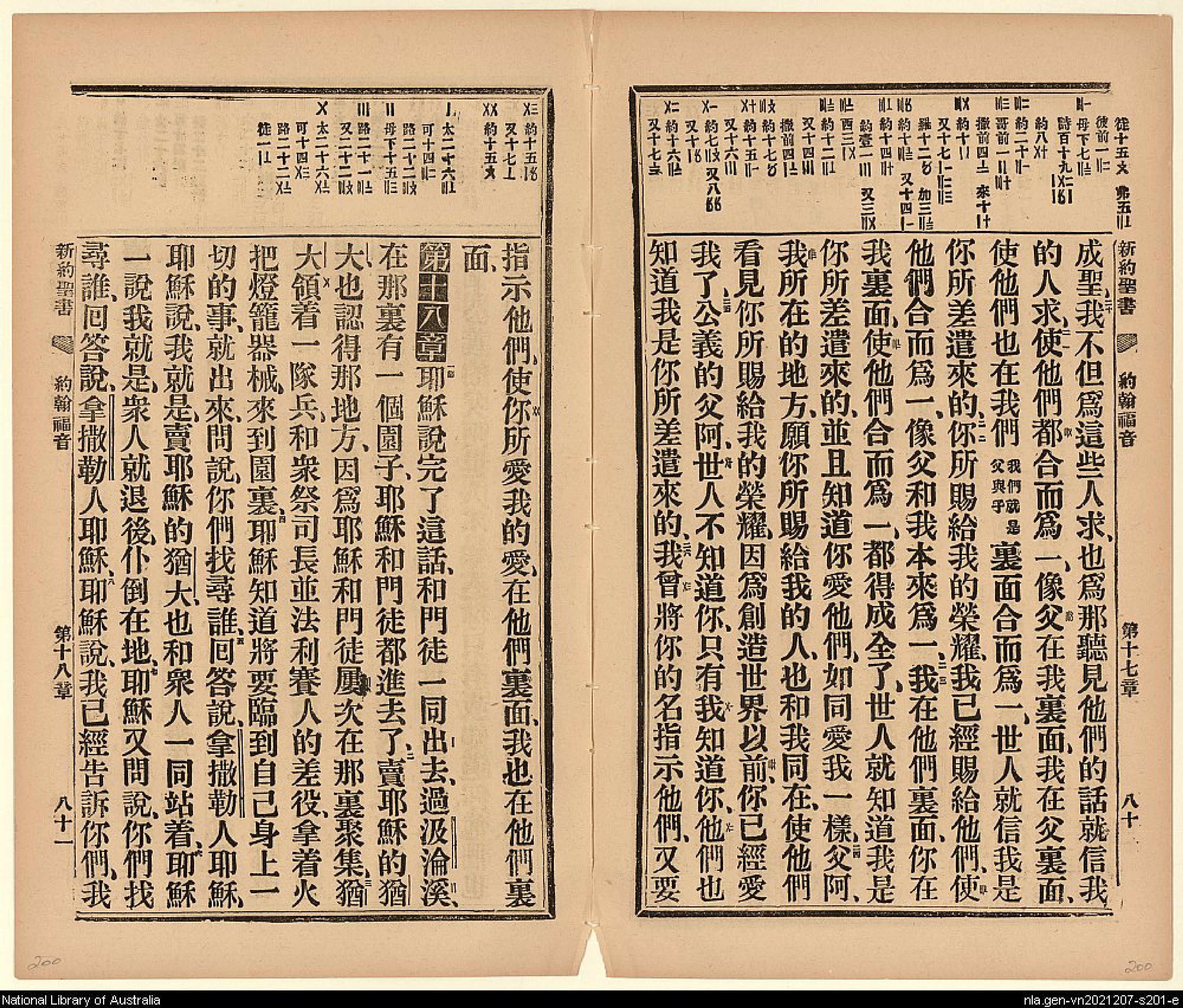 1906年新約全書 約翰福音 17 章 20 節到 18 章 8 節