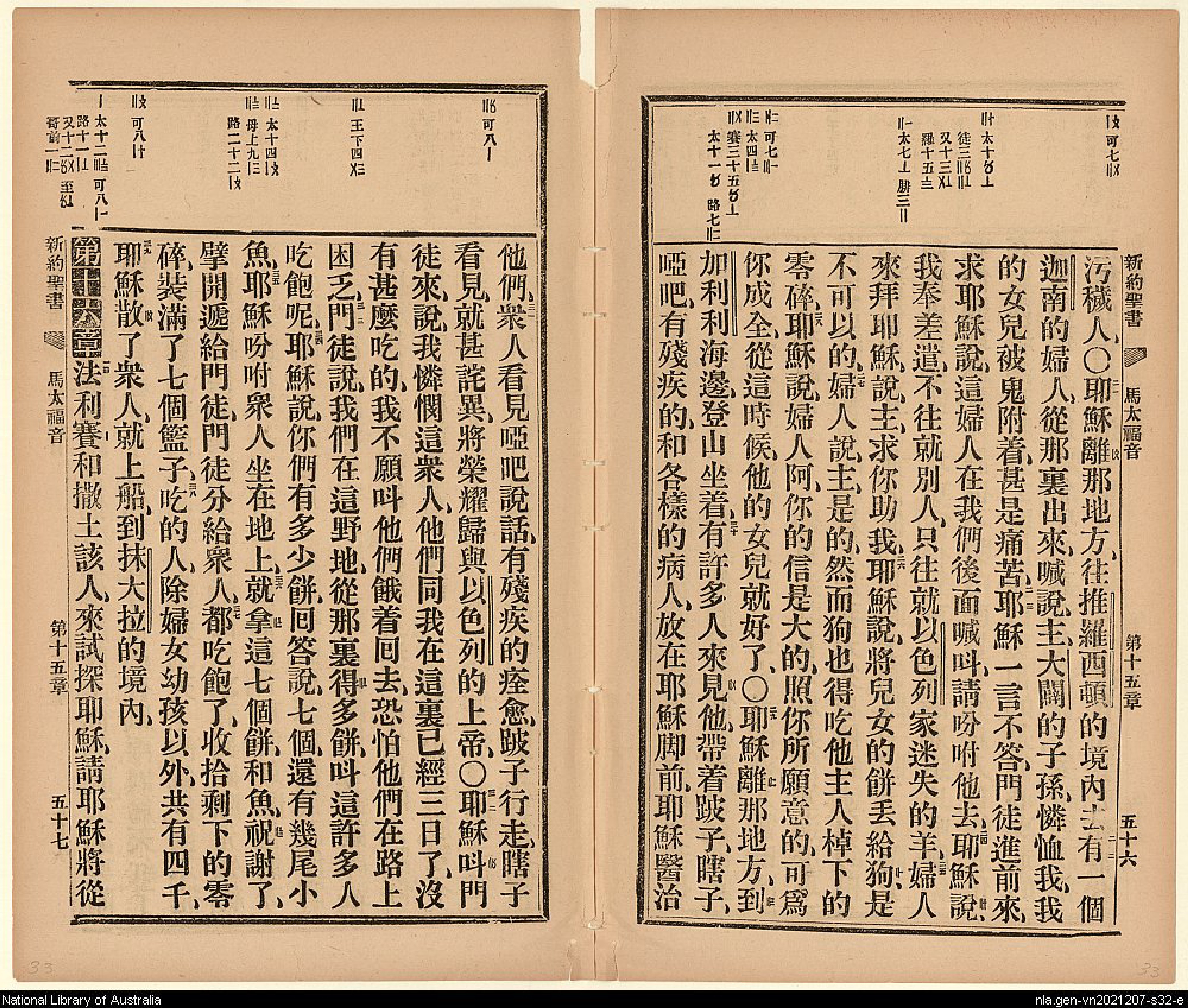 1906年新約全書 馬太福音 15 章 21 節到 16 章 1 節