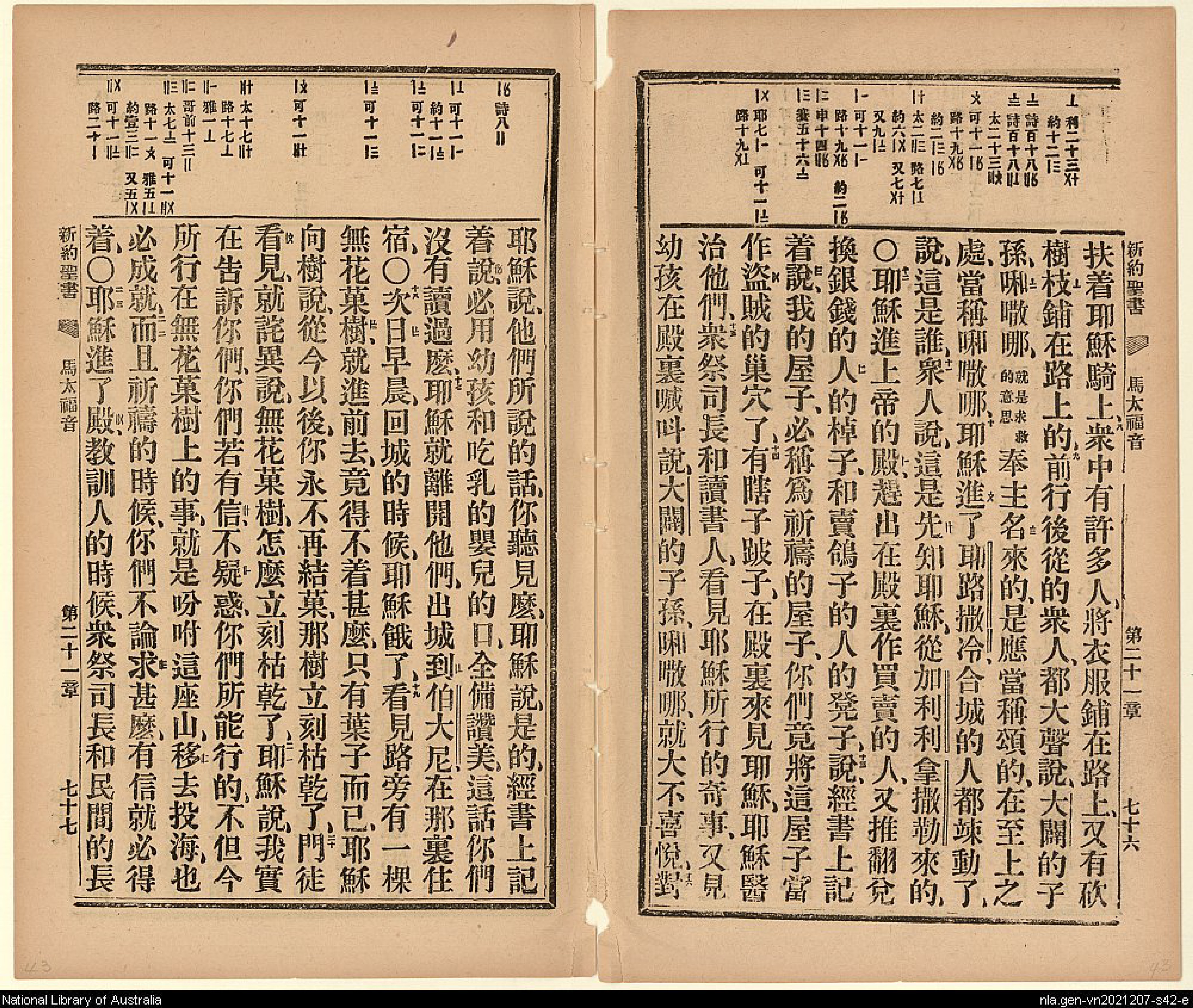 1906年新約全書 馬太福音 21 章 8 節到 21 章 23 節