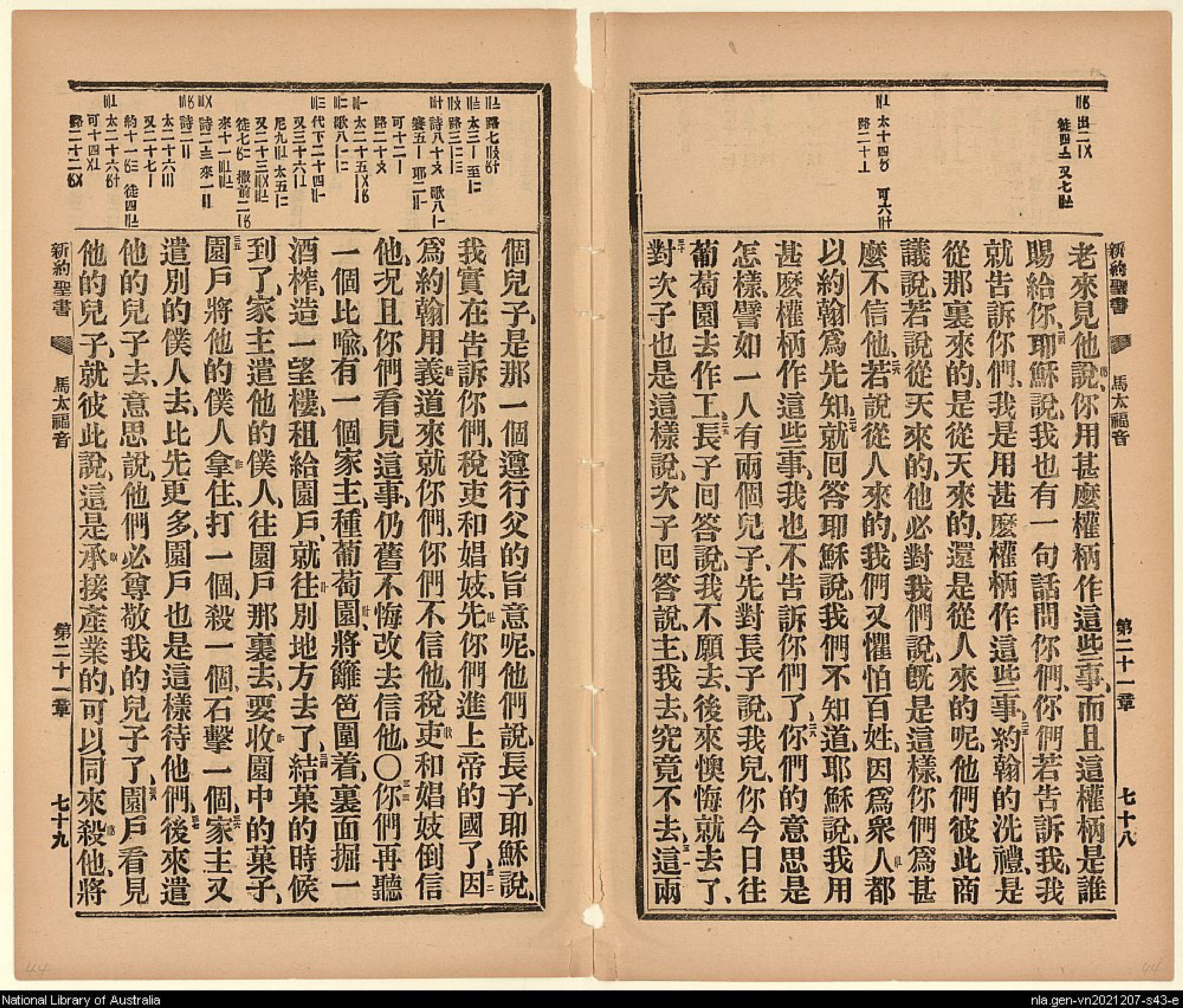 1906年新約全書 馬太福音 21 章 24 節到 21 章 38 節