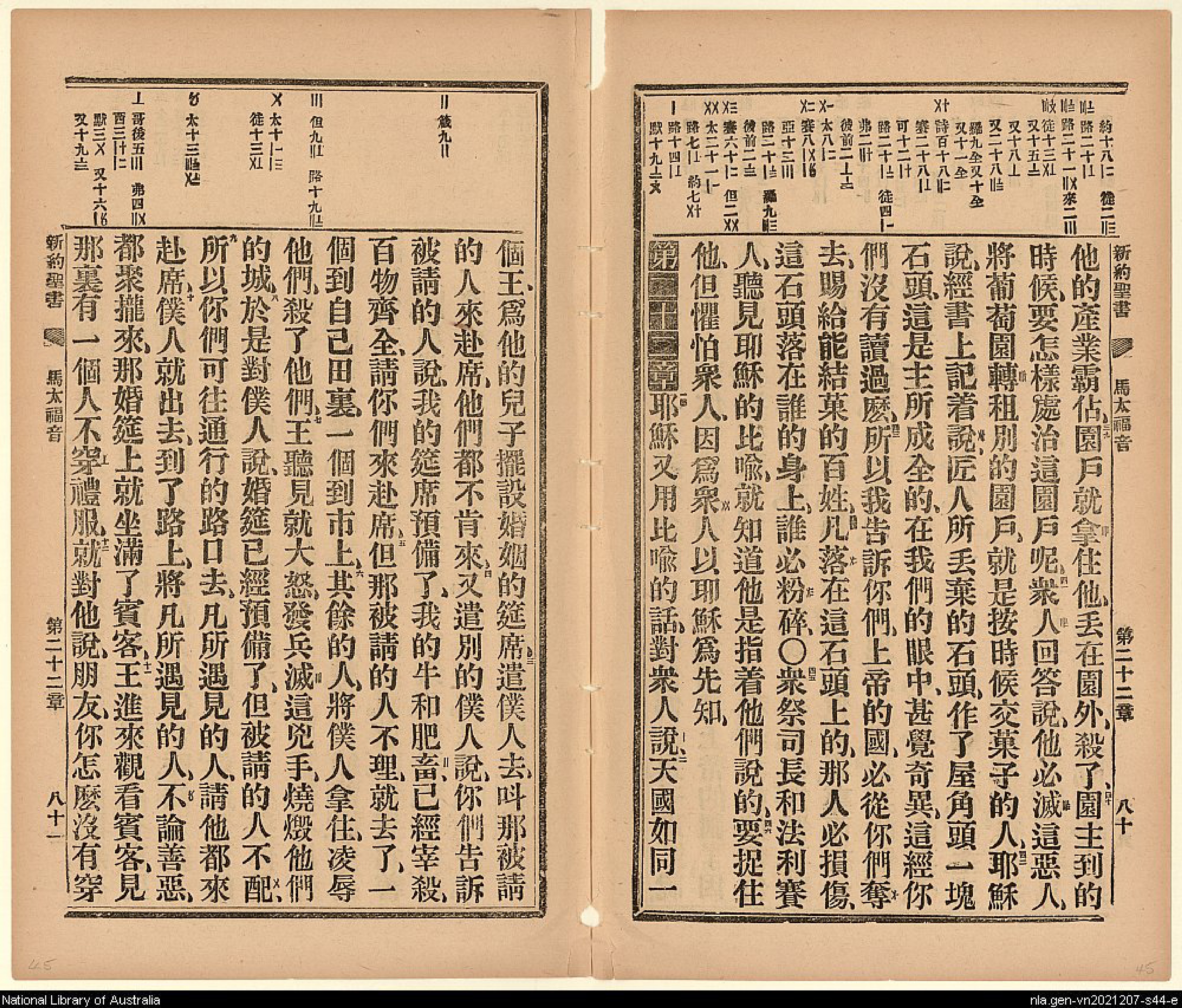 1906年新約全書 馬太福音 21 章 39 節到 22 章 12 節