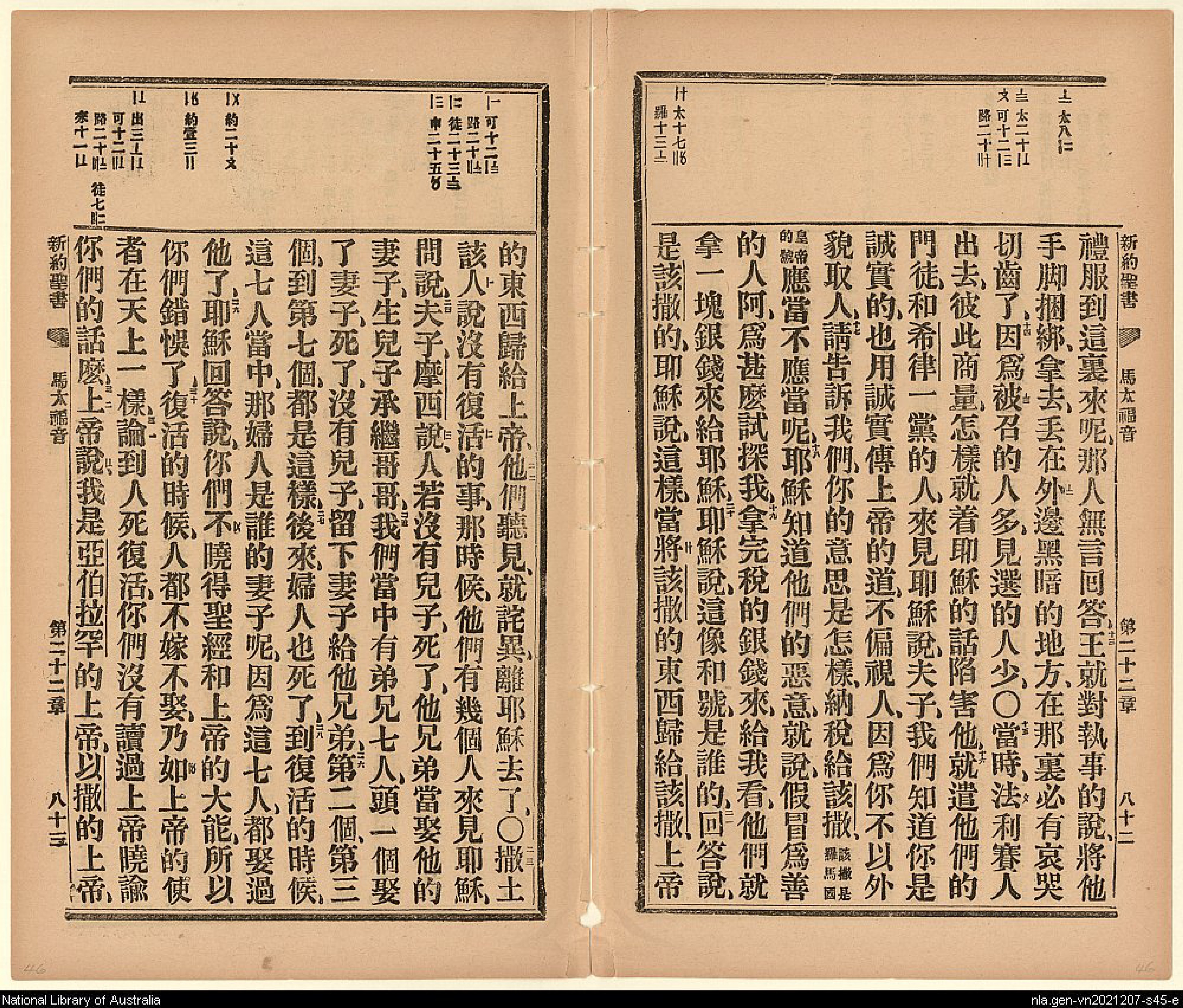 1906年新約全書 馬太福音 22 章 13 節到 22 章 32 節