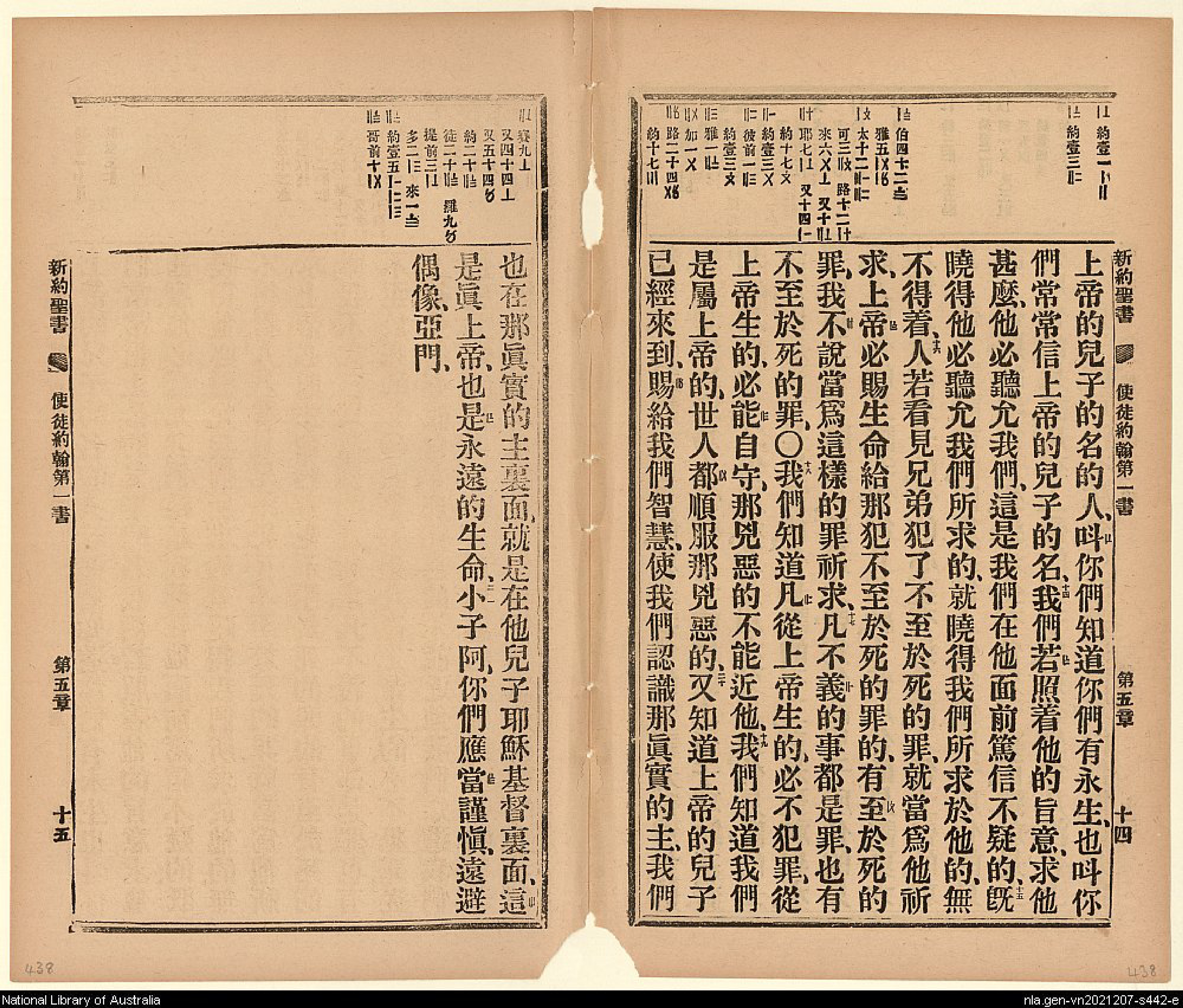 1906年新約全書 約翰一書 5 章 14 節到 5 章 21 節