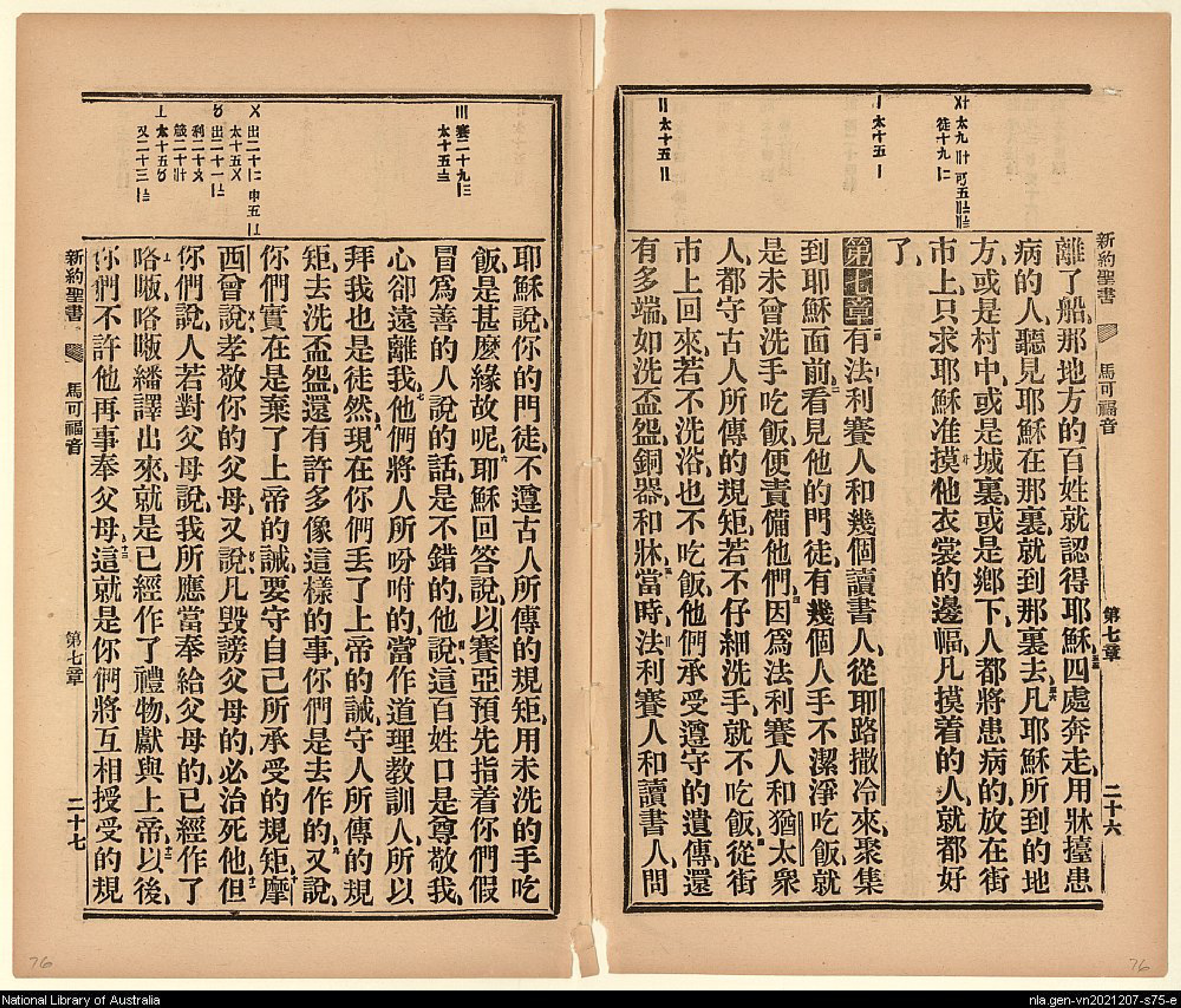 1906年新約全書 馬可福音 6 章 54 節到 7 章 13 節
