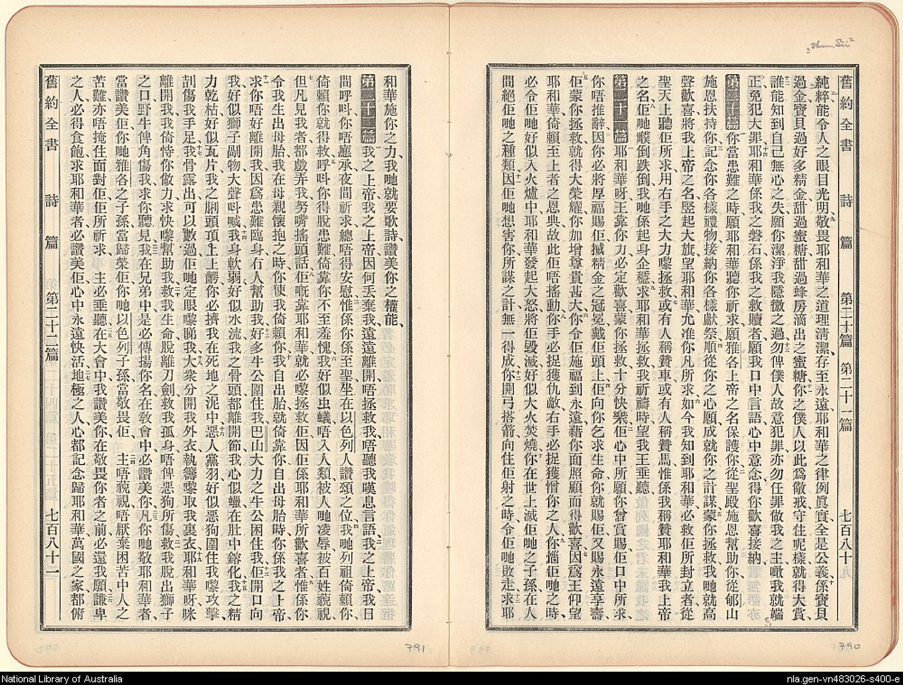 1907年新舊約全書 詩篇 19 章 9 節到 22 章 27 節