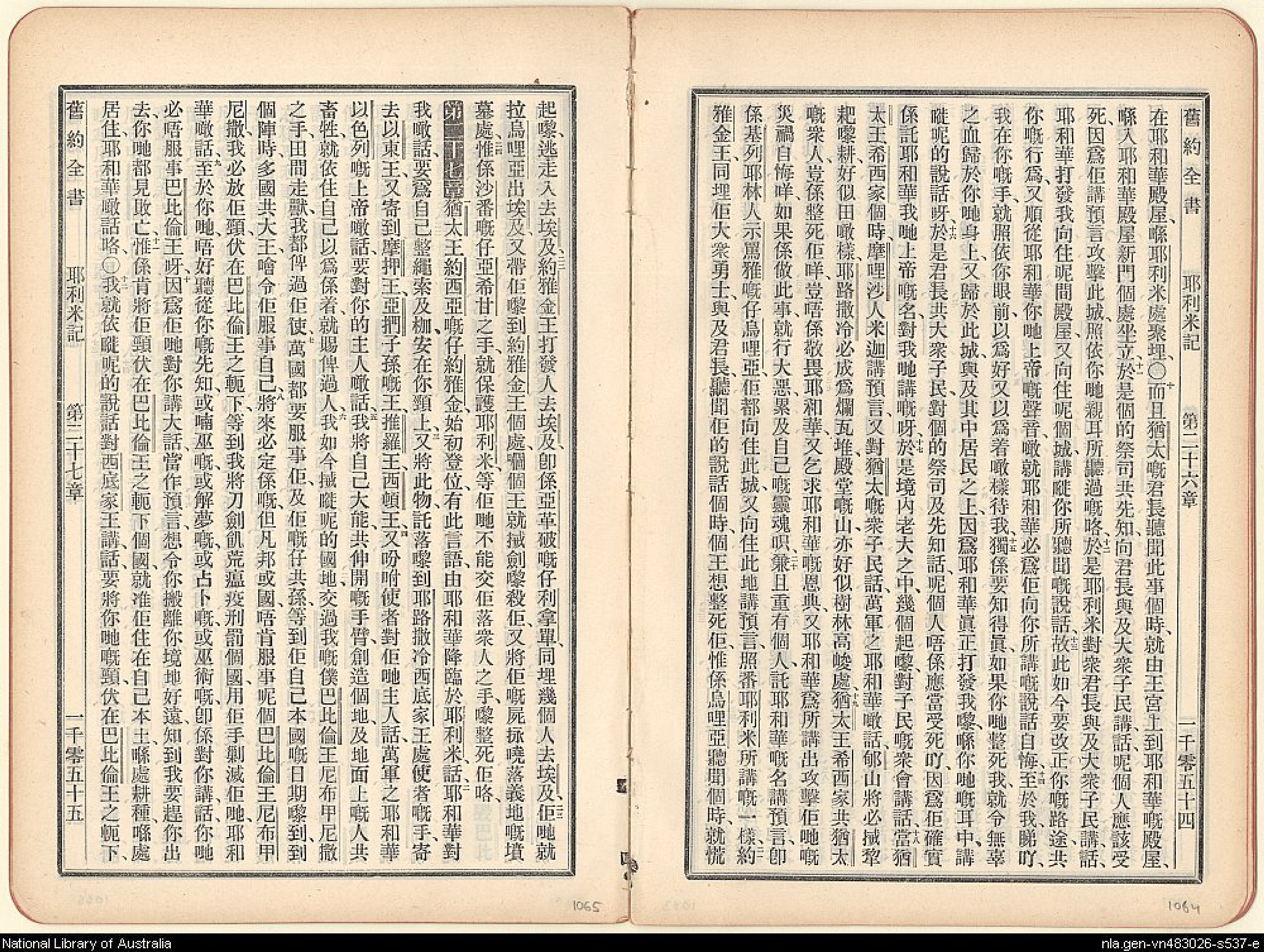 1907年新舊約全書 耶利米書 26 章 10 節到 27 章 12 節