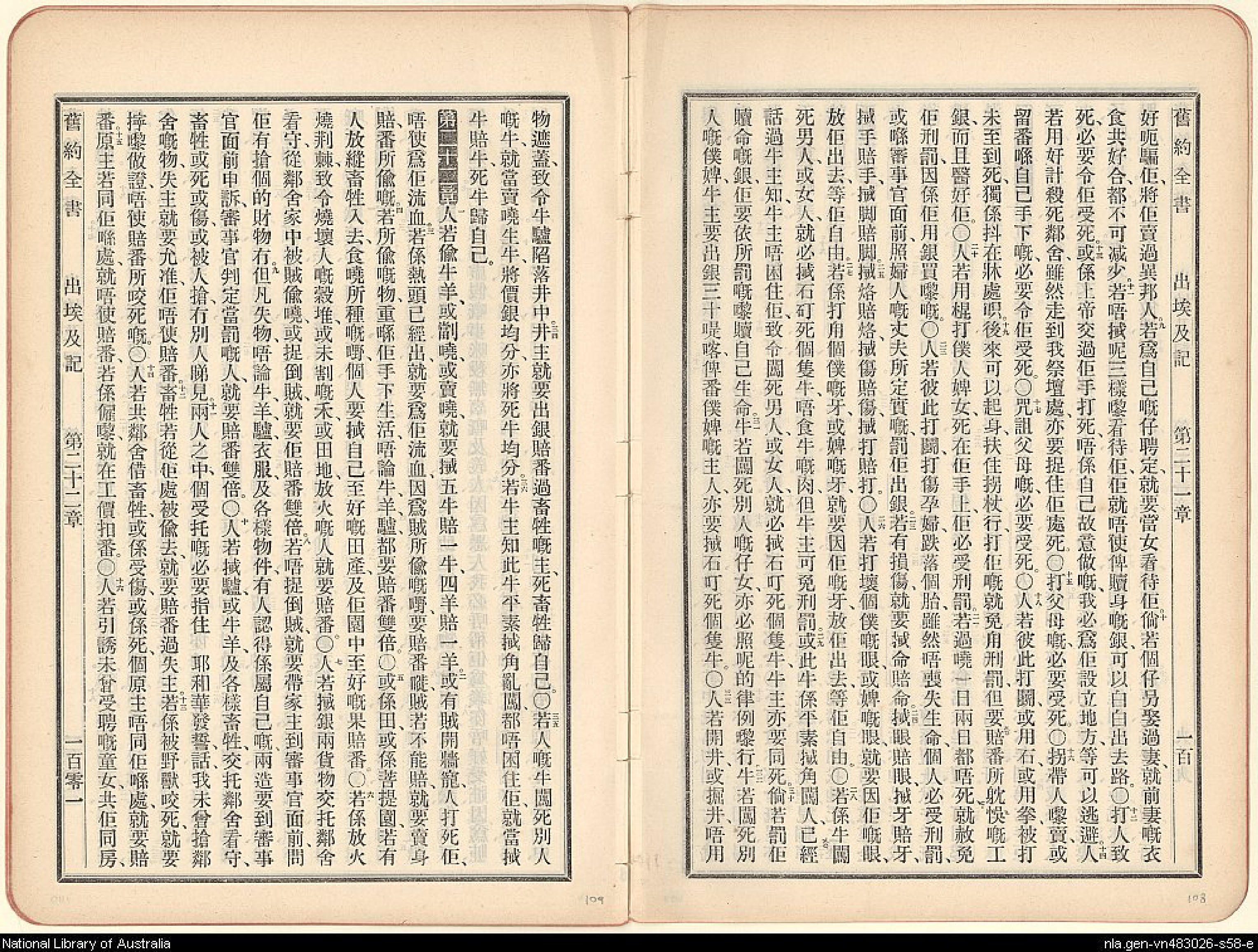 1907年新舊約全書 出埃及記 21 章 9 節到 22 章 16 節