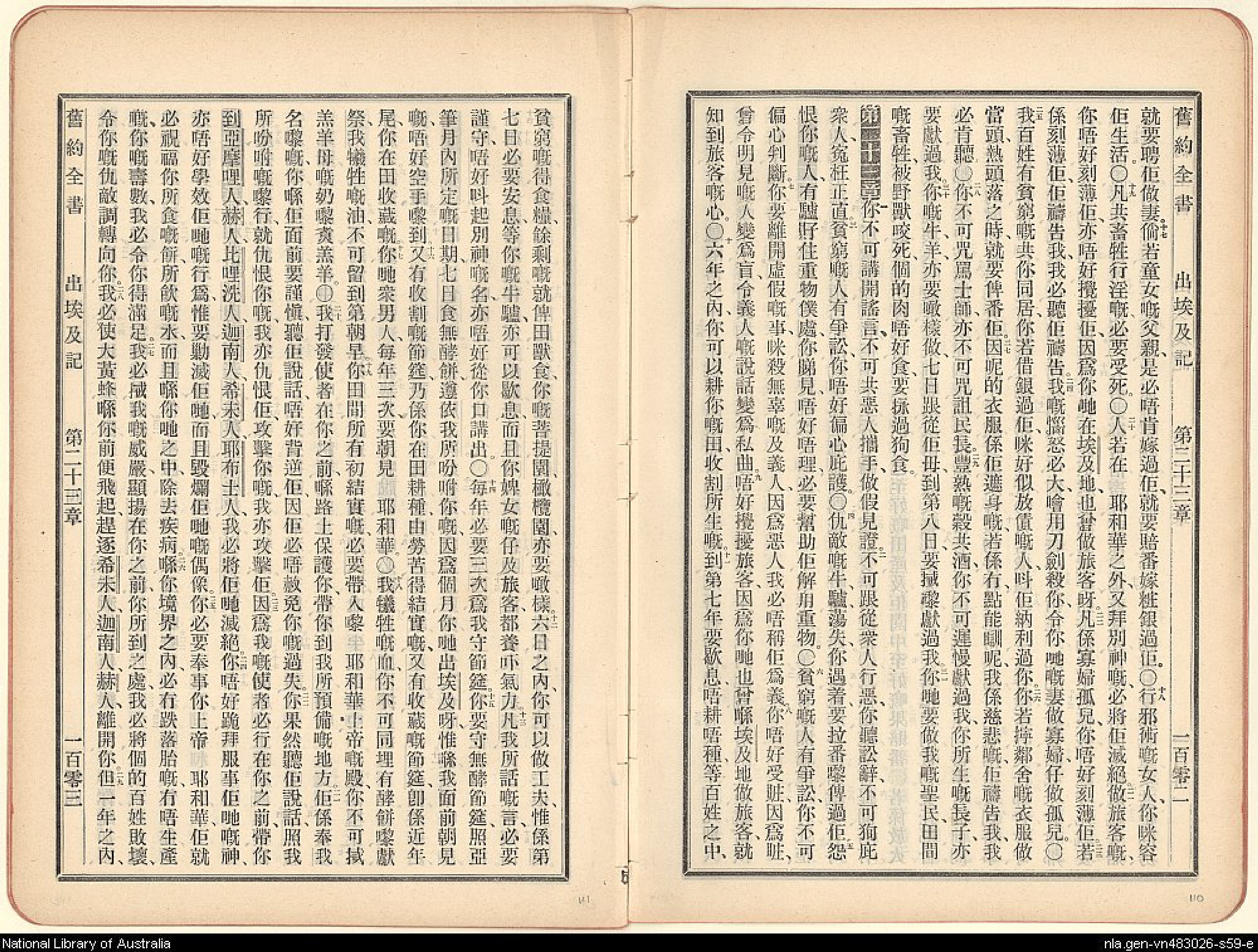 1907年新舊約全書 出埃及記 22 章 17 節到 23 章 28 節