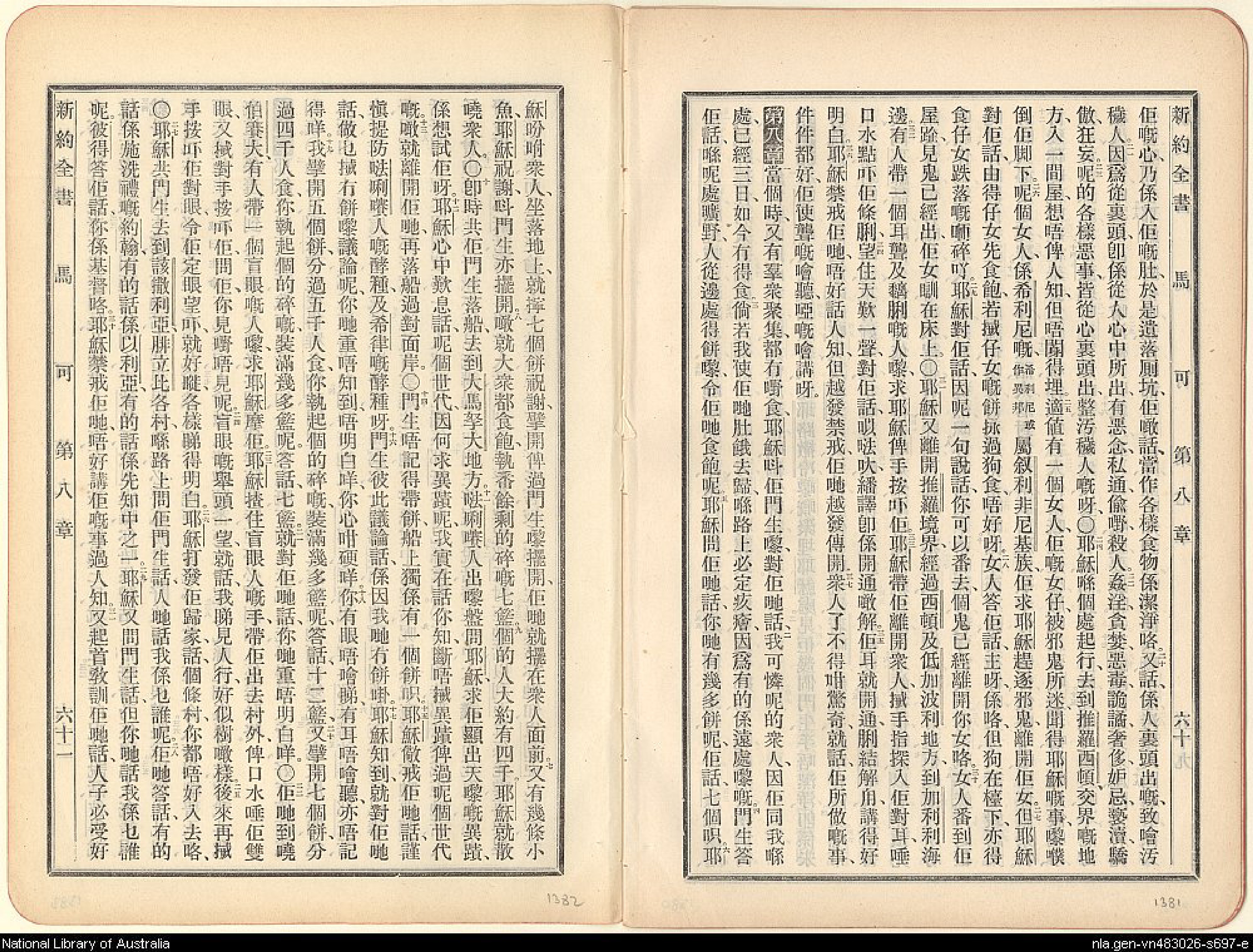 1907年新舊約全書 馬可福音 7 章 19 節到 8 章 30 節