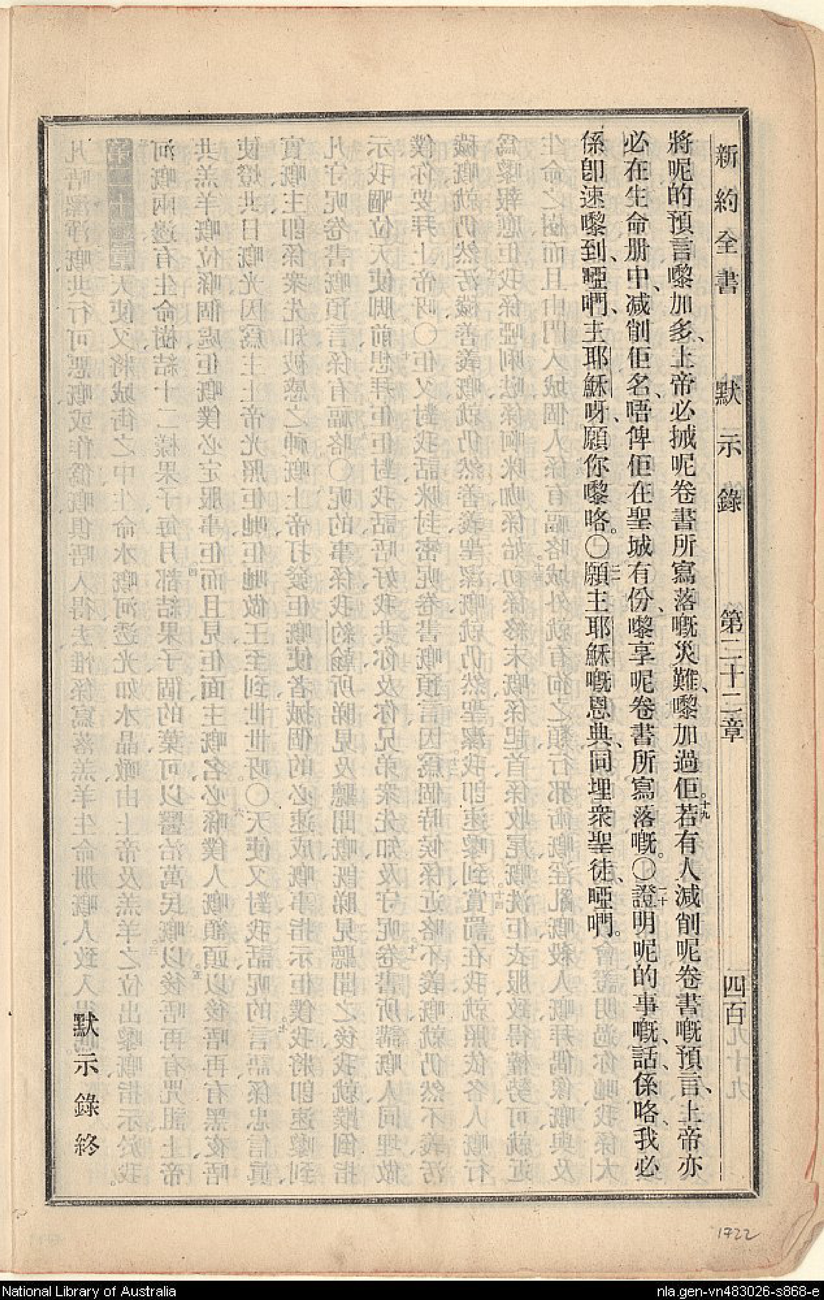 1907年新舊約全書 啟示錄 22 章 19 節到 22 章 21 節
