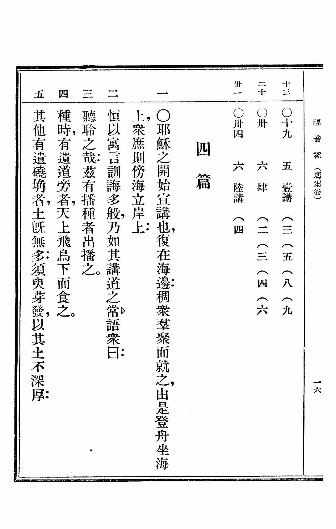 1949年救世福音 馬可福音 4 章 1 節到 4 章 5 節