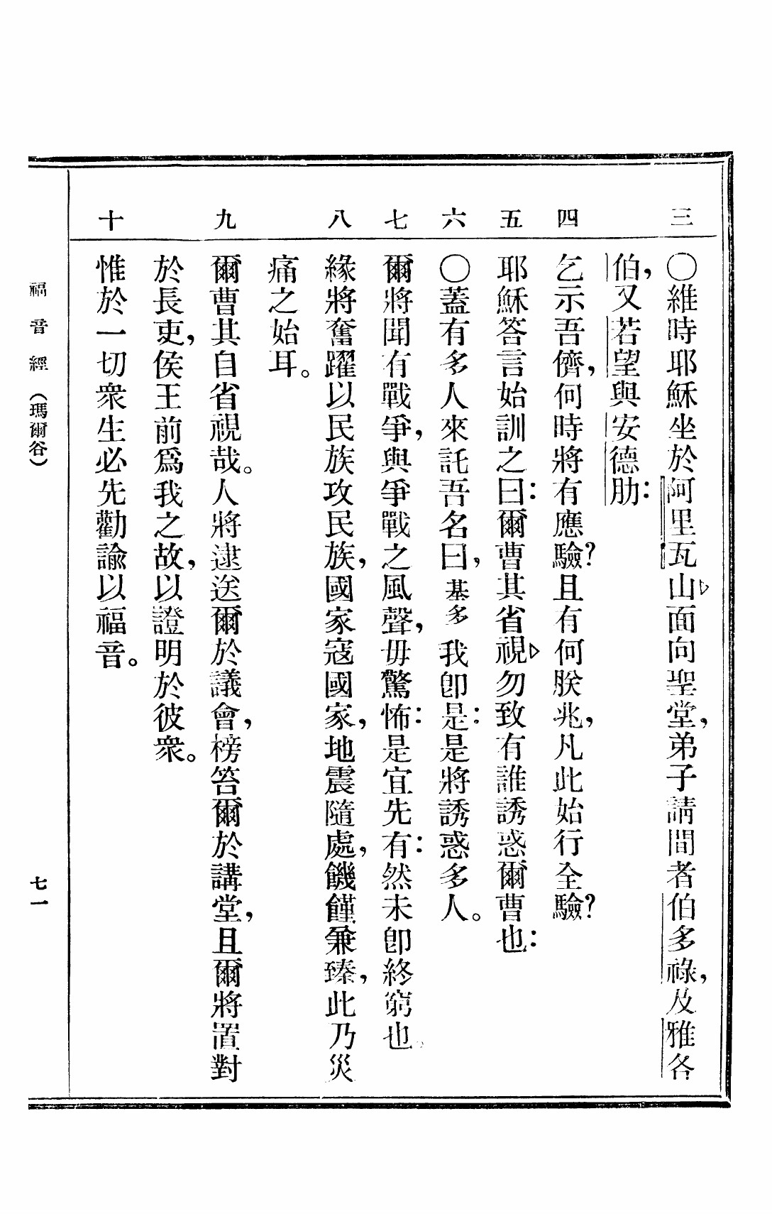 1949年救世福音 馬可福音 13 章 3 節到 13 章 10 節