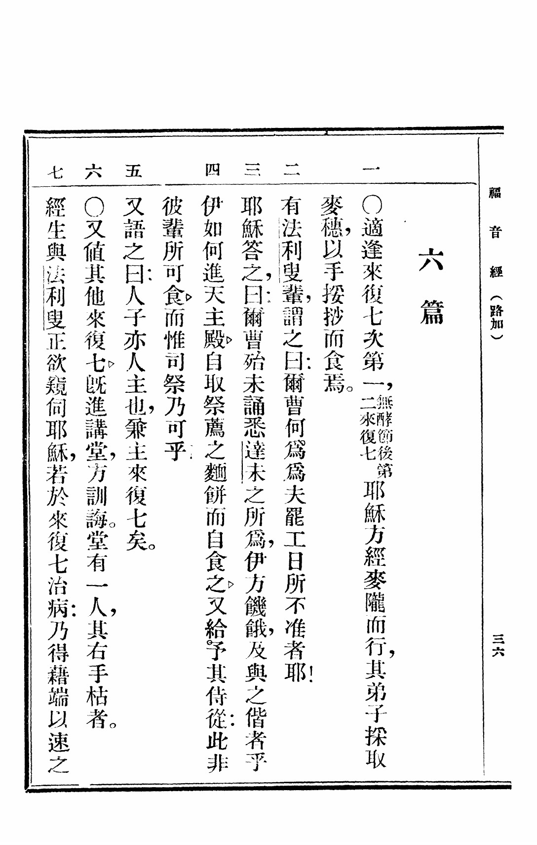 1949年救世福音 路加福音 6 章 1 節到 6 章 7 節