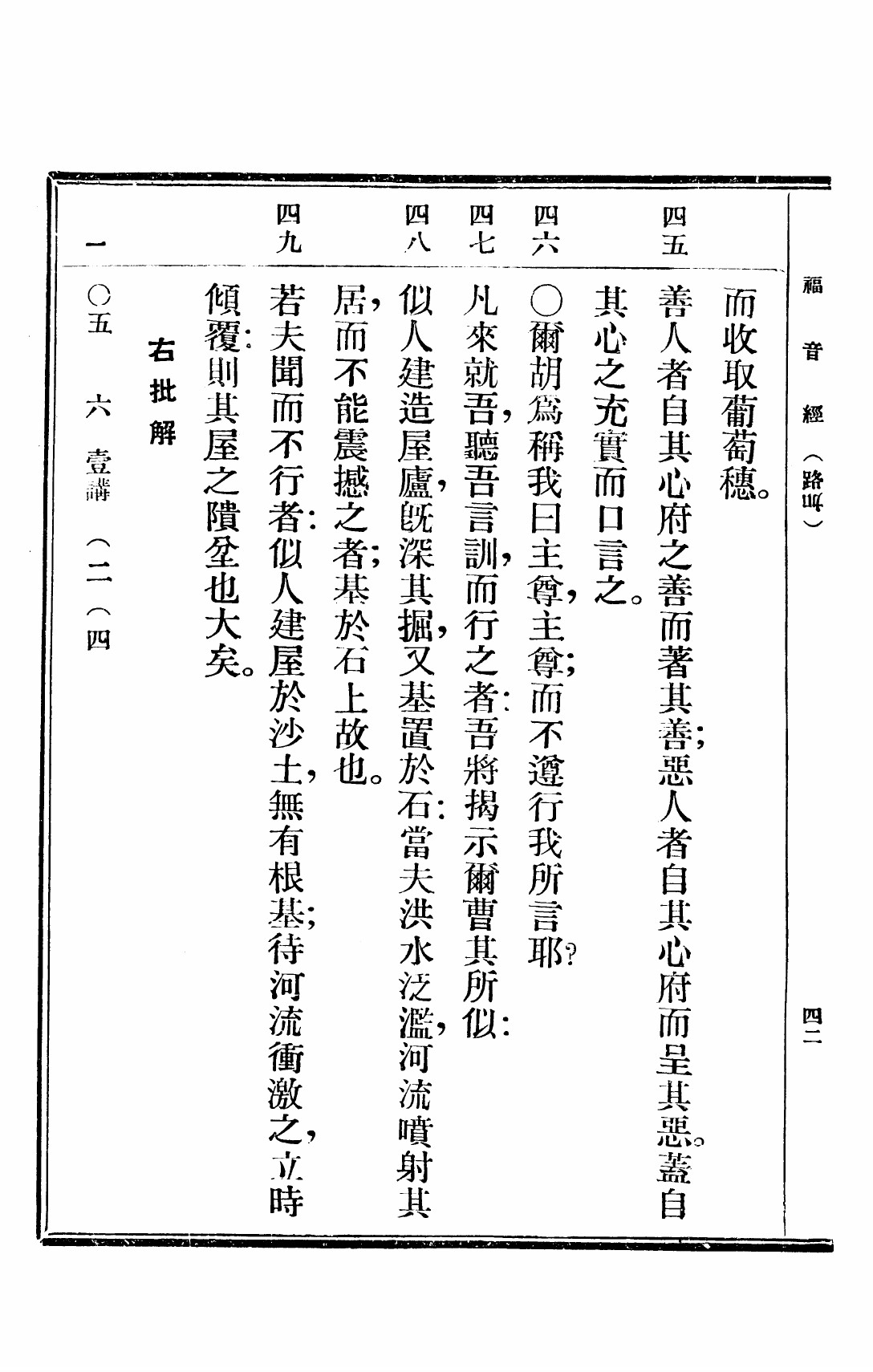 1949年救世福音 路加福音 6 章 45 節到 6 章 49 節