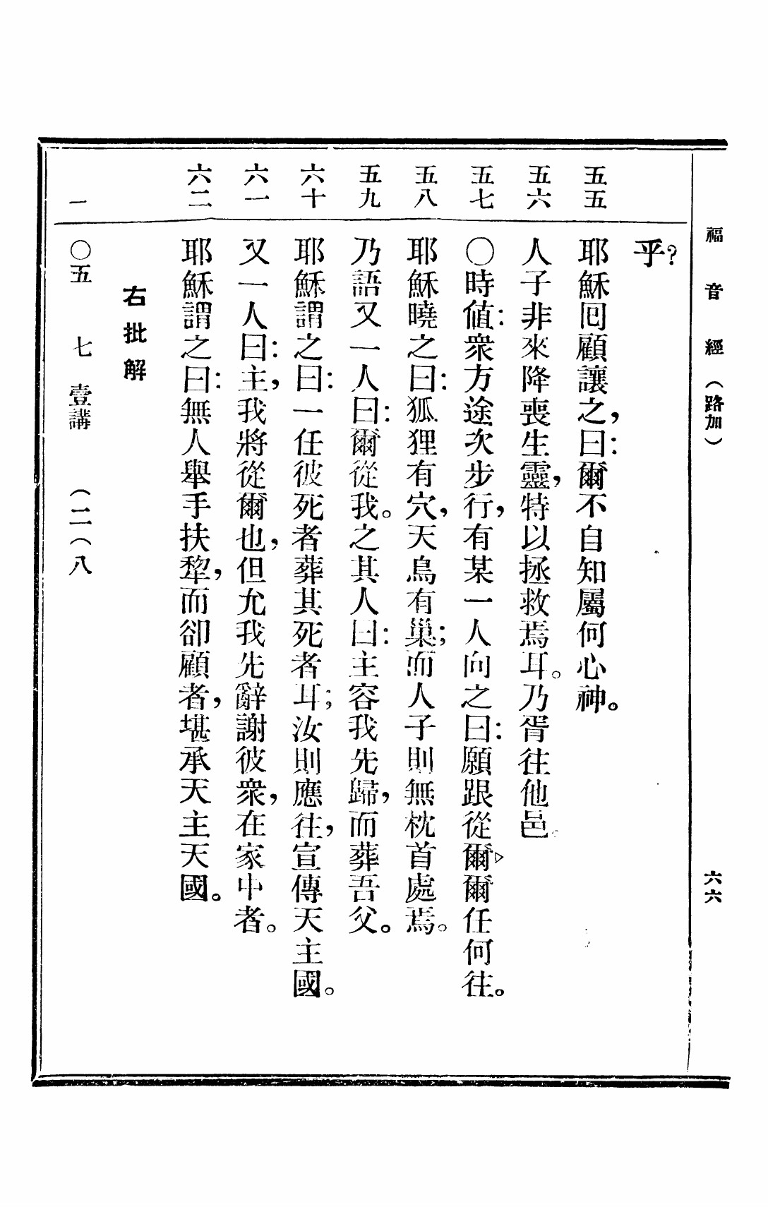 1949年救世福音 路加福音 9 章 55 節到 9 章 62 節
