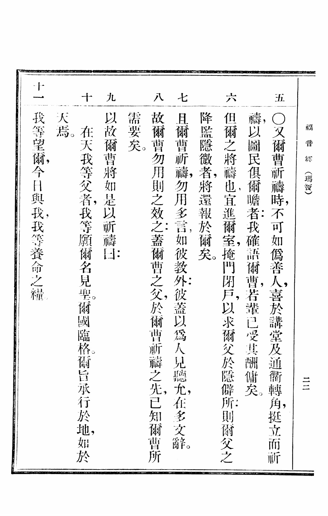 1949年救世福音 馬太福音 6 章 5 節到 6 章 11 節