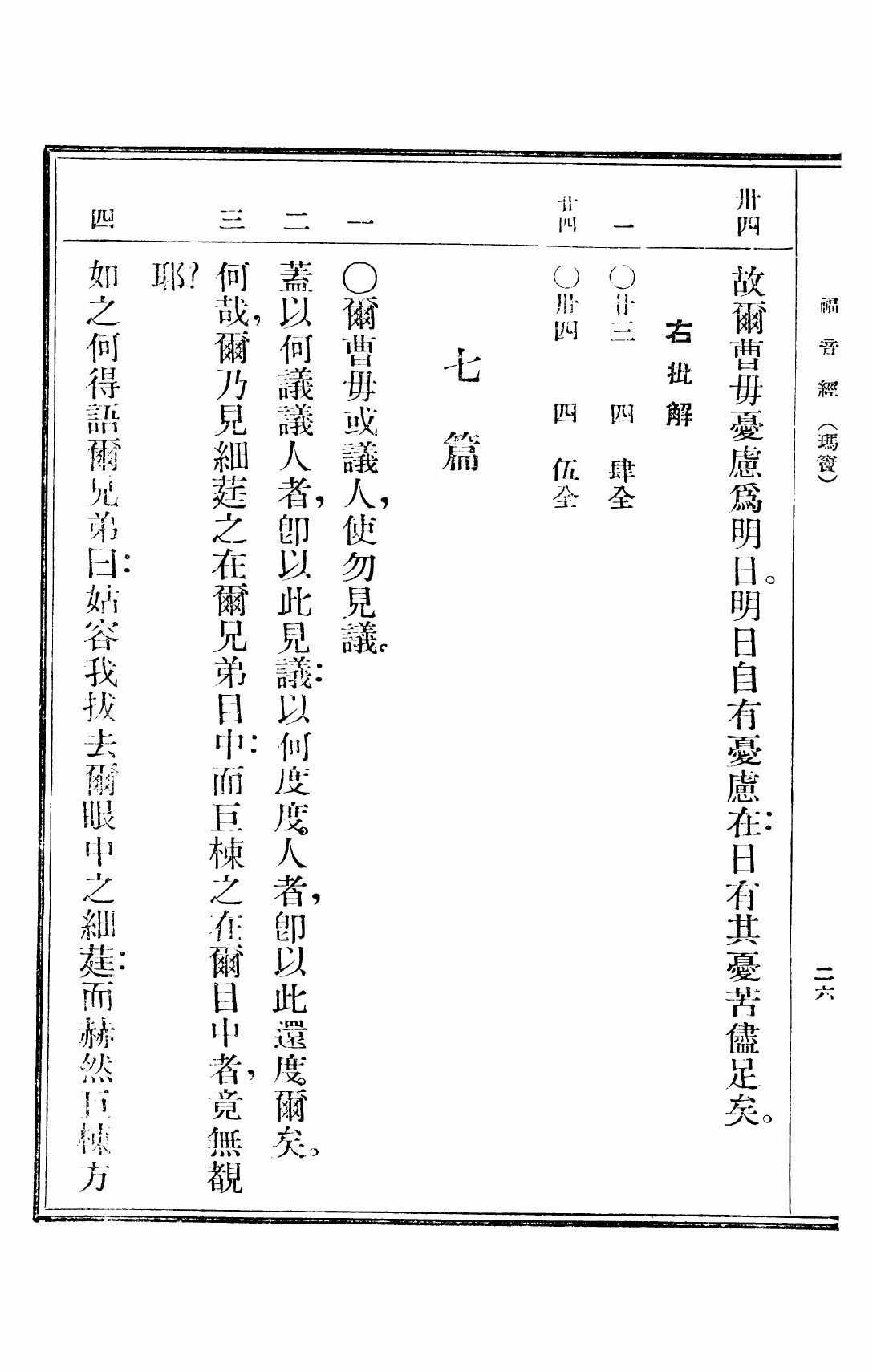 1949年救世福音 馬太福音 6 章 34 節到 7 章 4 節