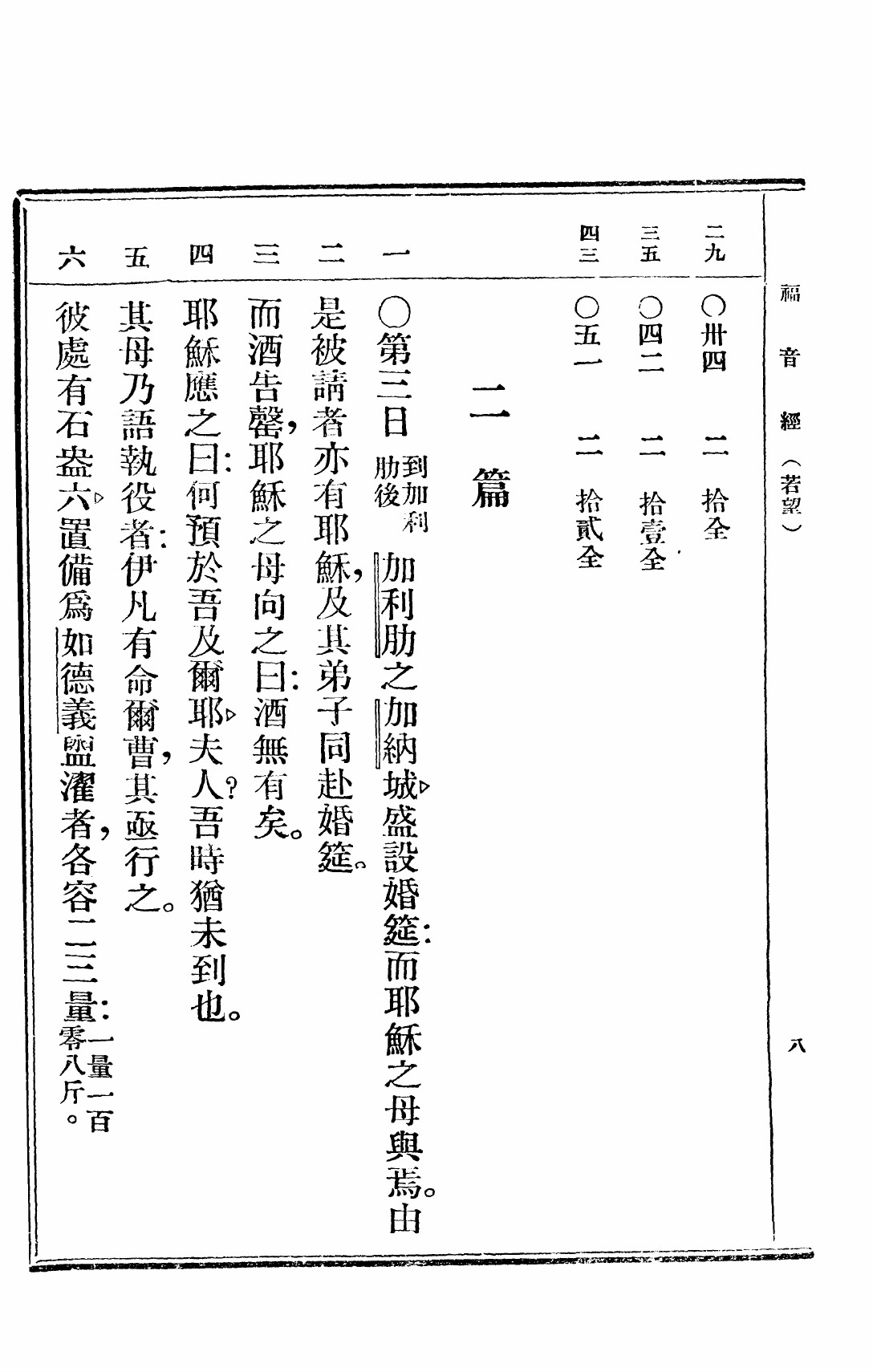 1949年救世福音 約翰福音 2 章 1 節到 2 章 6 節