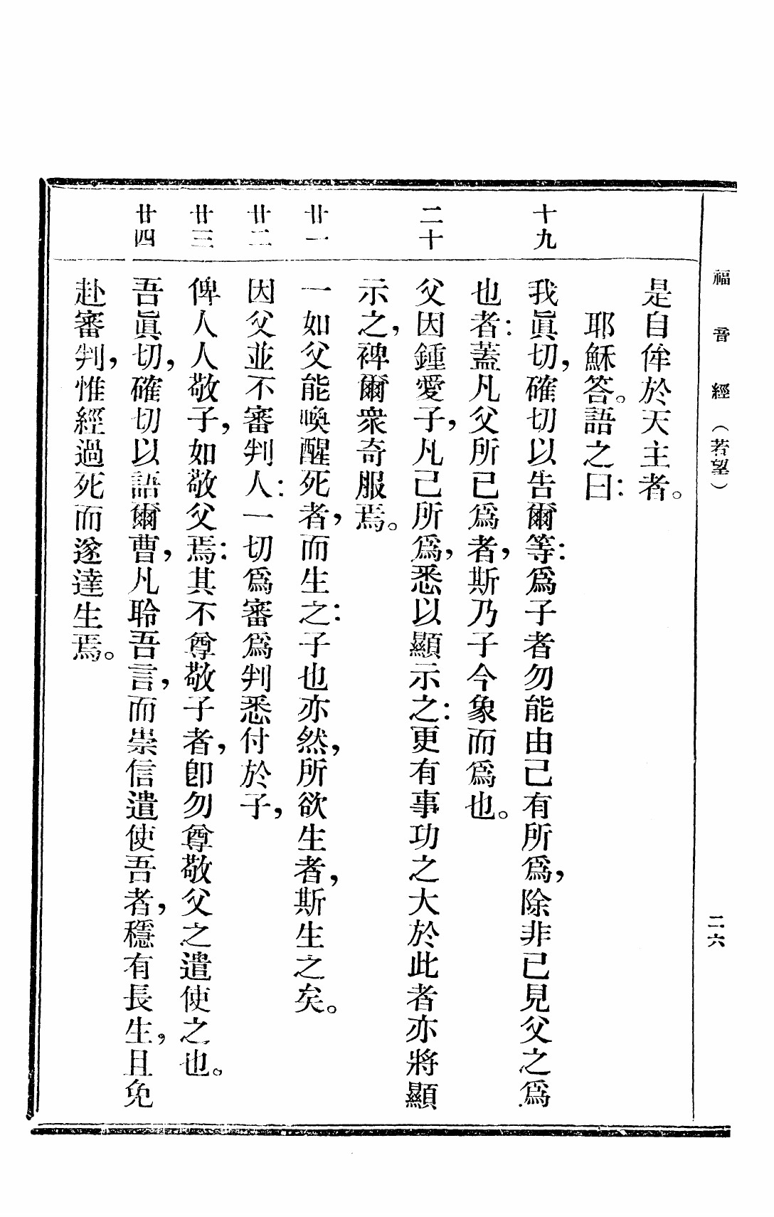 1949年救世福音 約翰福音 5 章 19 節到 5 章 24 節