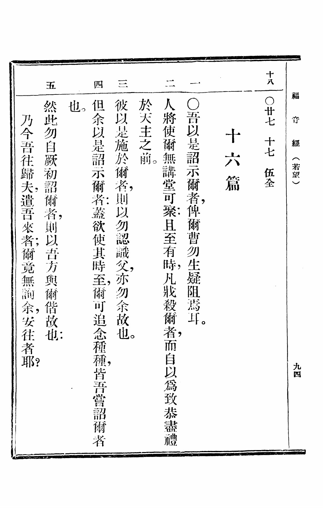 1949年救世福音 約翰福音 16 章 1 節到 16 章 5 節