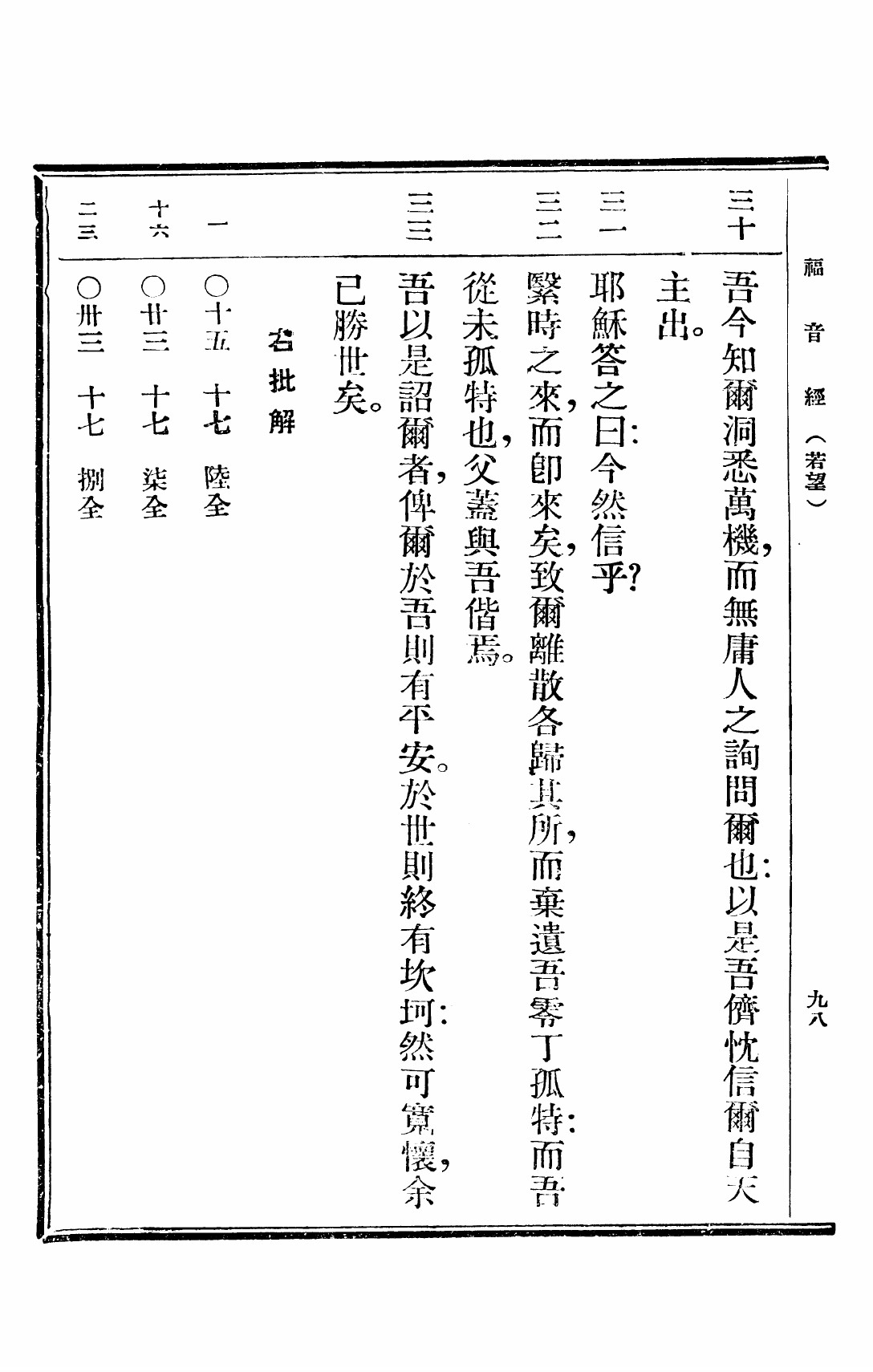 1949年救世福音 約翰福音 16 章 30 節到 16 章 33 節