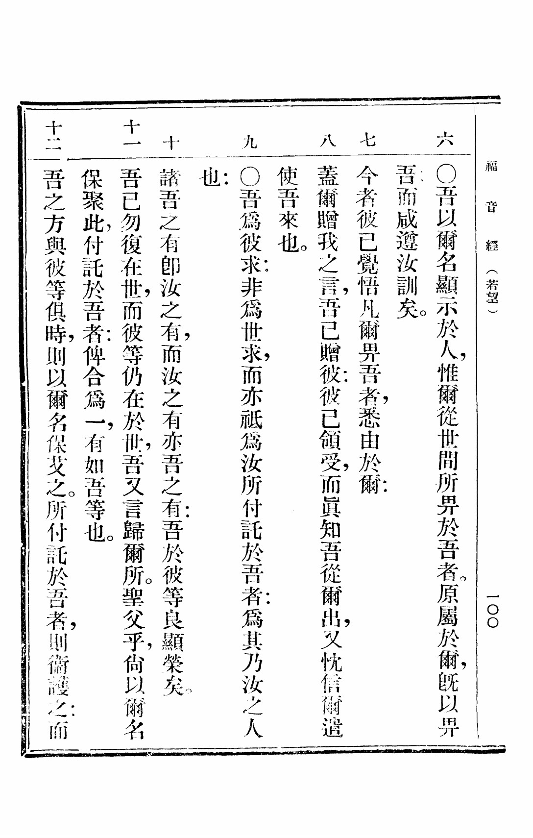 1949年救世福音 約翰福音 17 章 6 節到 17 章 12 節