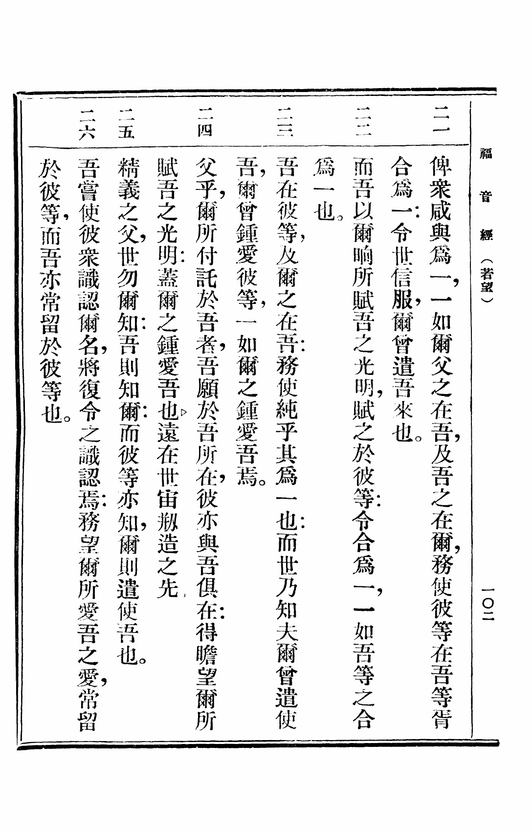 1949年救世福音 約翰福音 17 章 21 節到 17 章 26 節