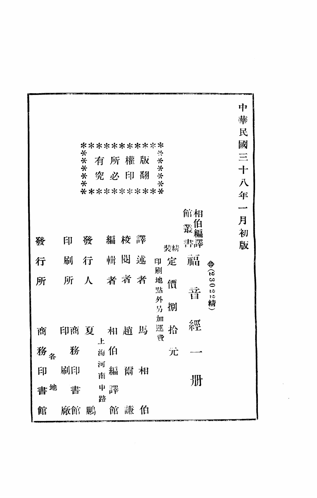 1949年救世福音 約翰福音 22 章 22 節到 22 章 22 節
