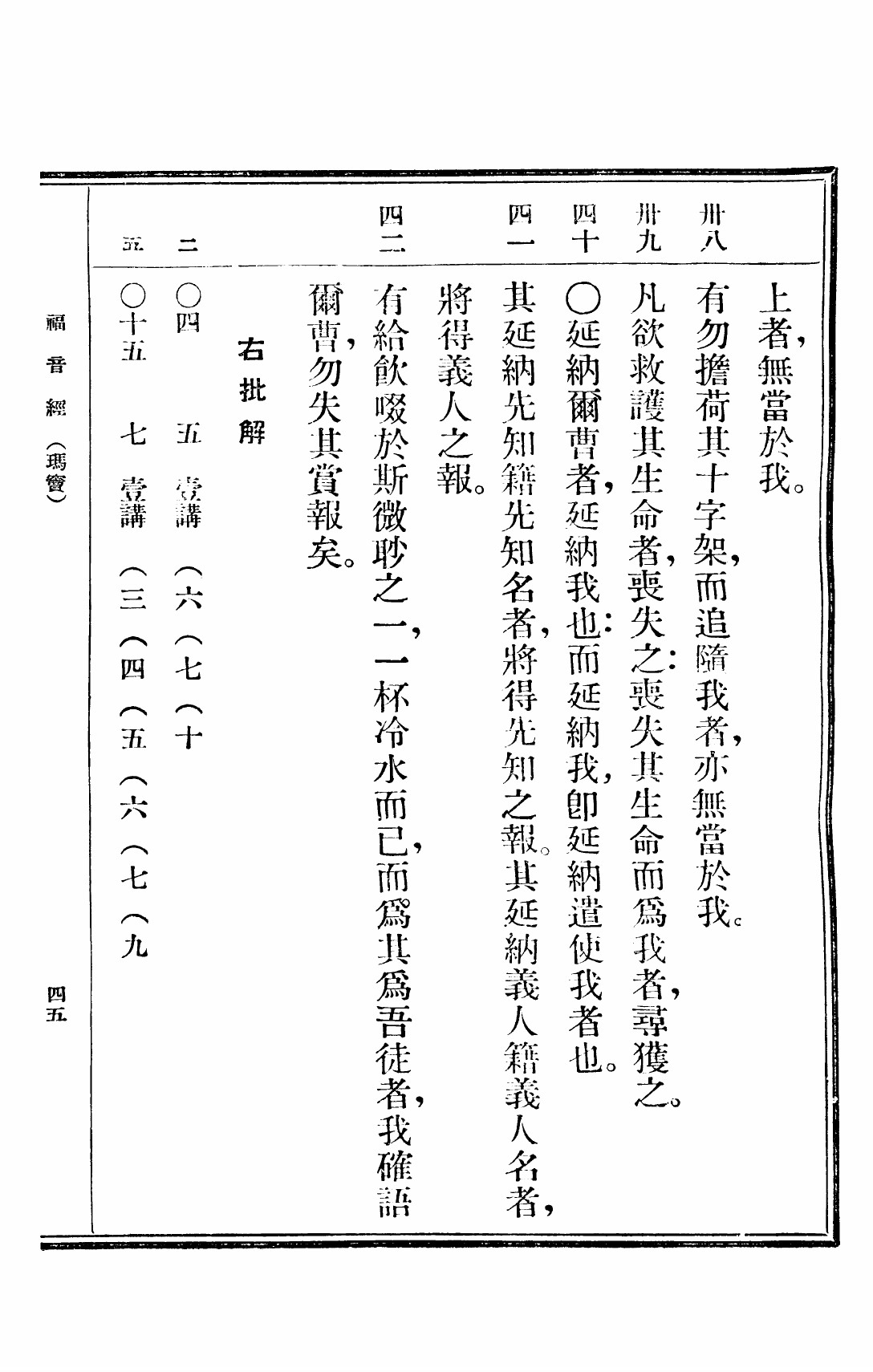1949年救世福音 馬太福音 10 章 38 節到 10 章 42 節