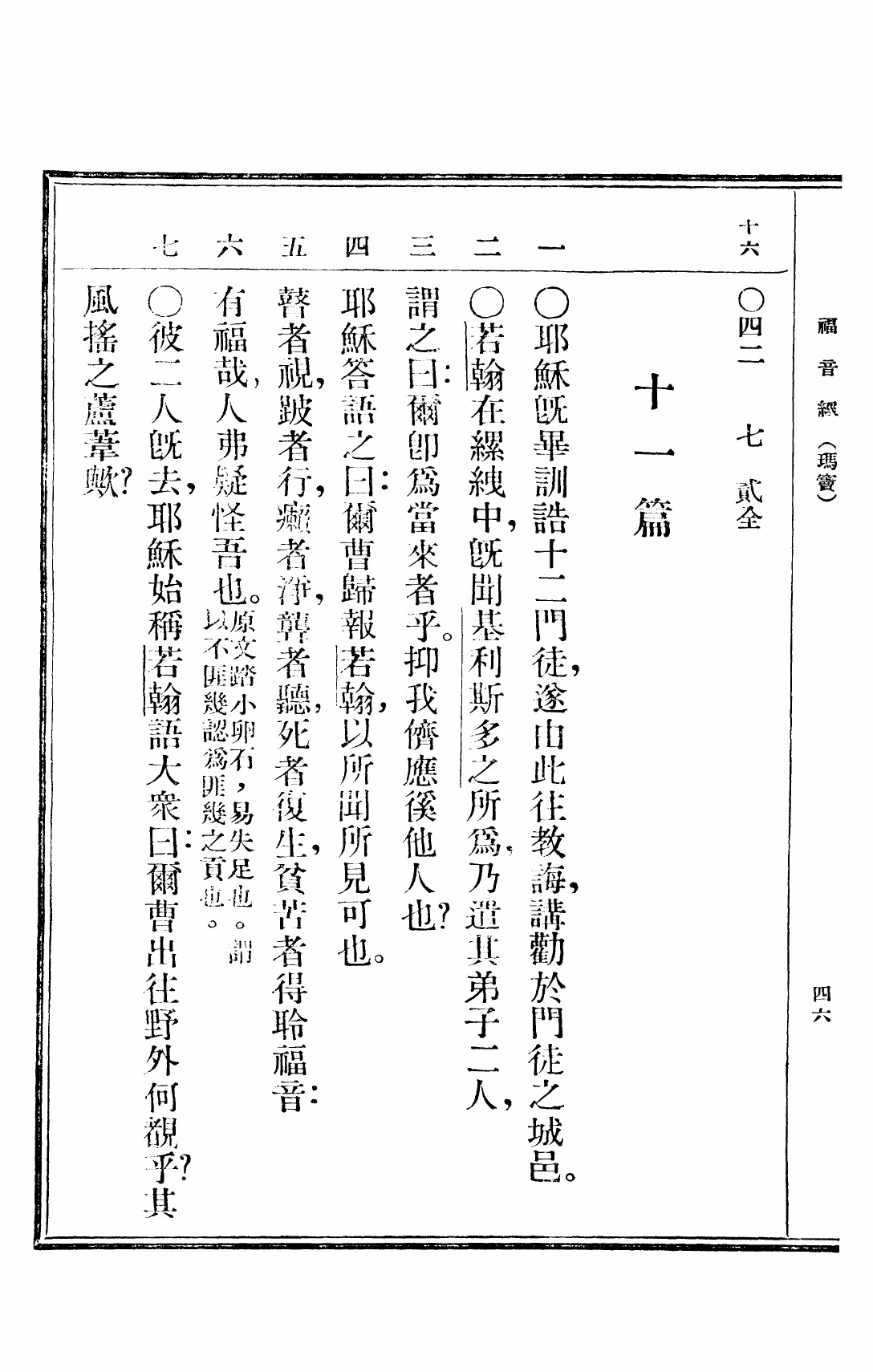 1949年救世福音 馬太福音 11 章 1 節到 11 章 7 節