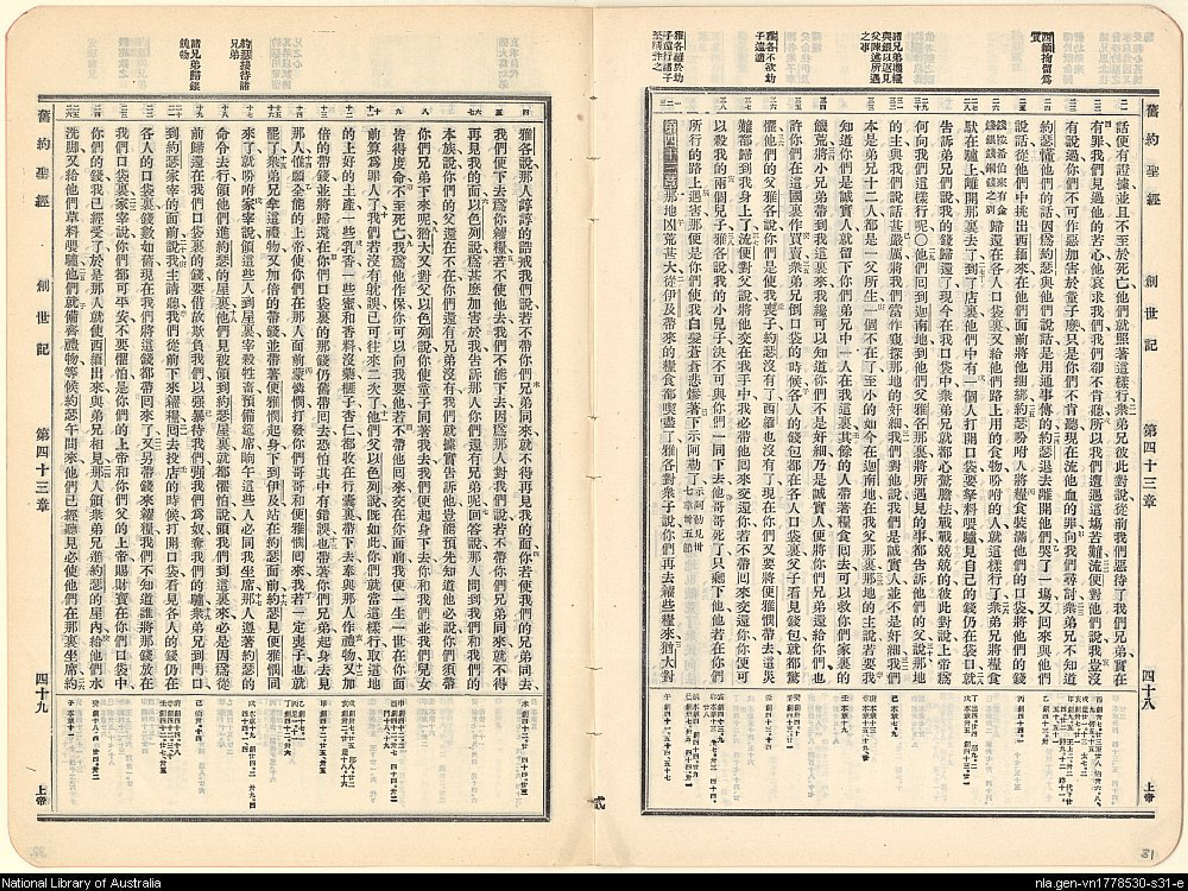1909年新舊約全書 創世記 42 章 21 節到 43 章 26 節