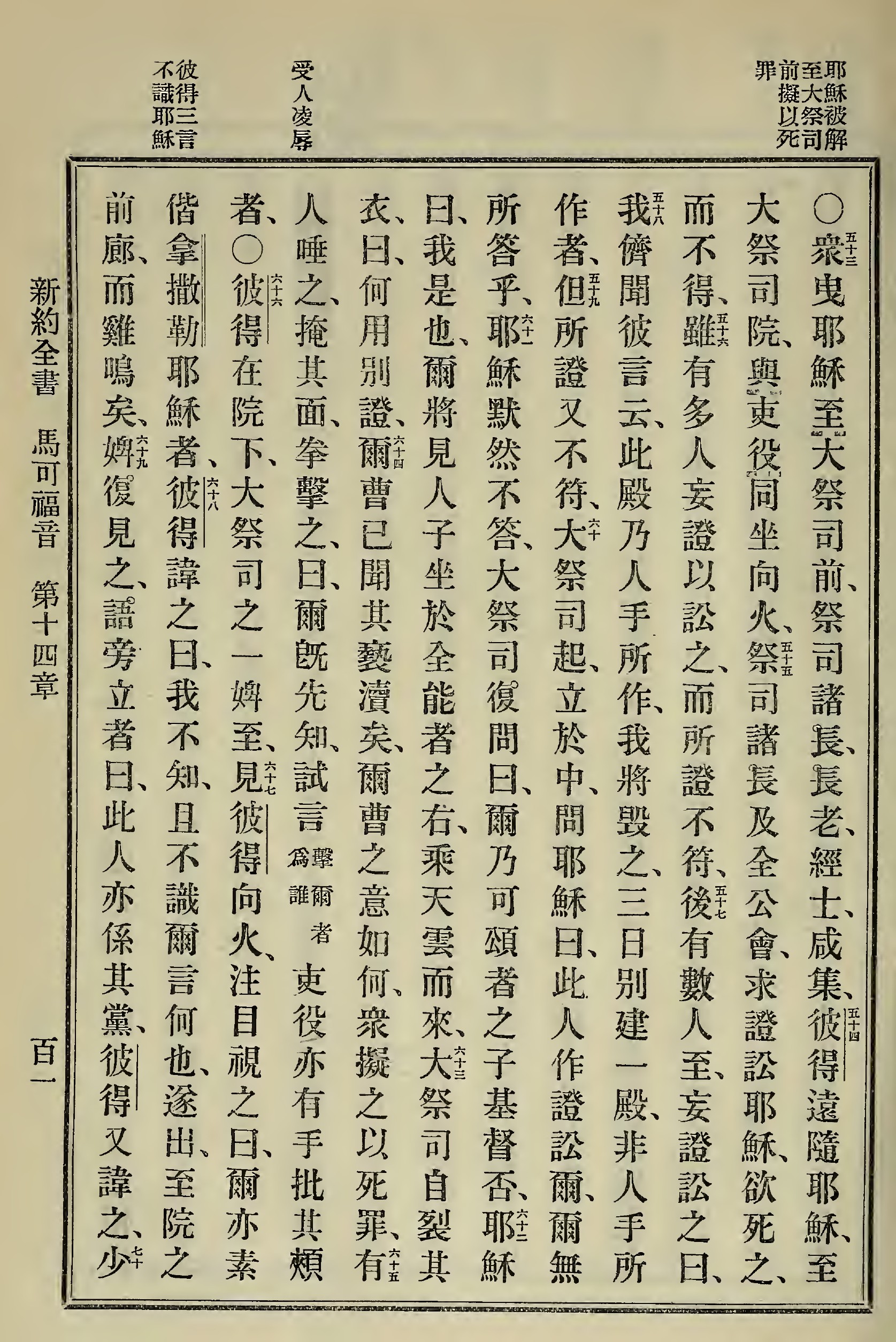 1898年新約全書 馬可福音 14 章 53 節到 14 章 69 節