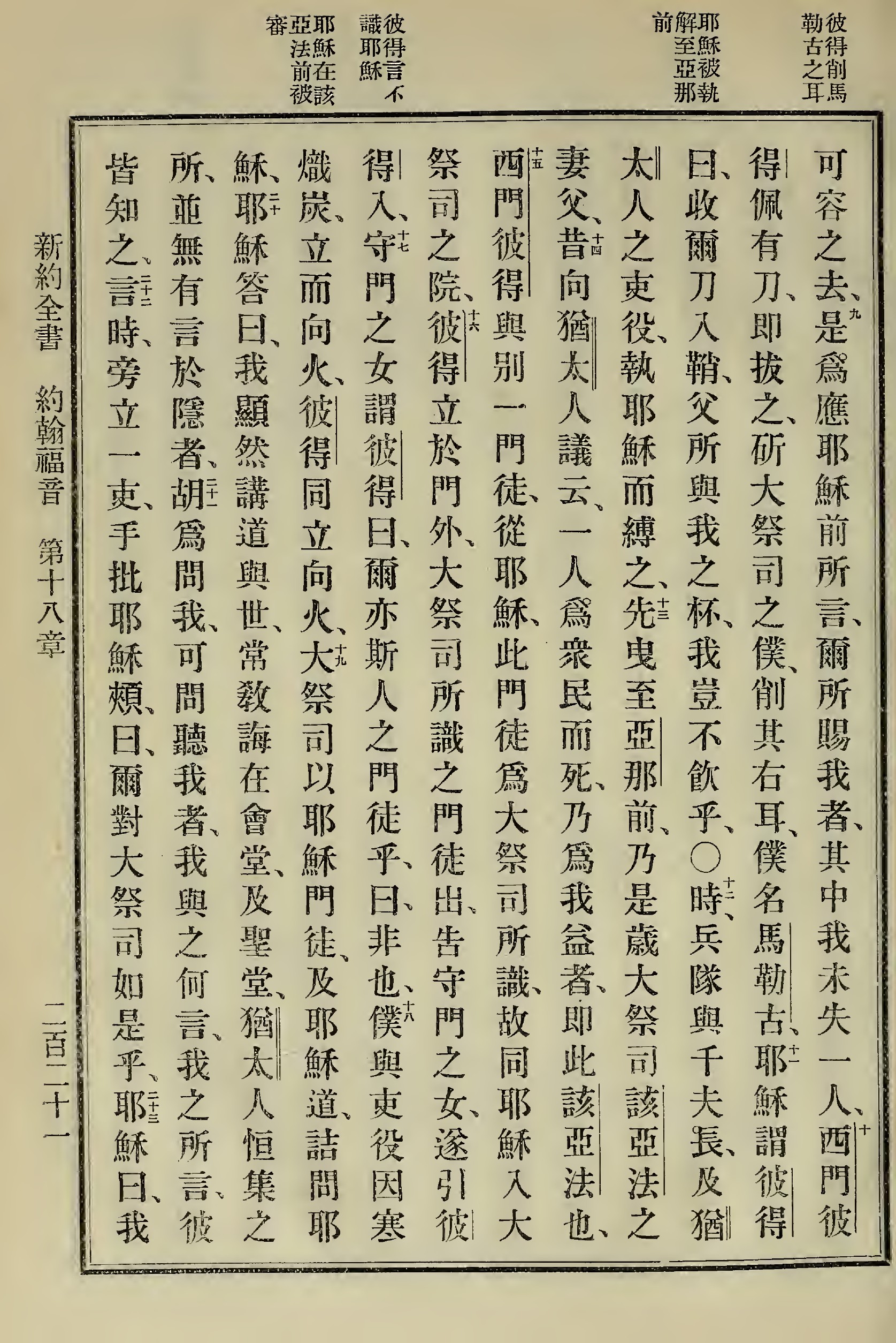 1898年新約全書 約翰福音 18 章 9 節到 18 章 22 節