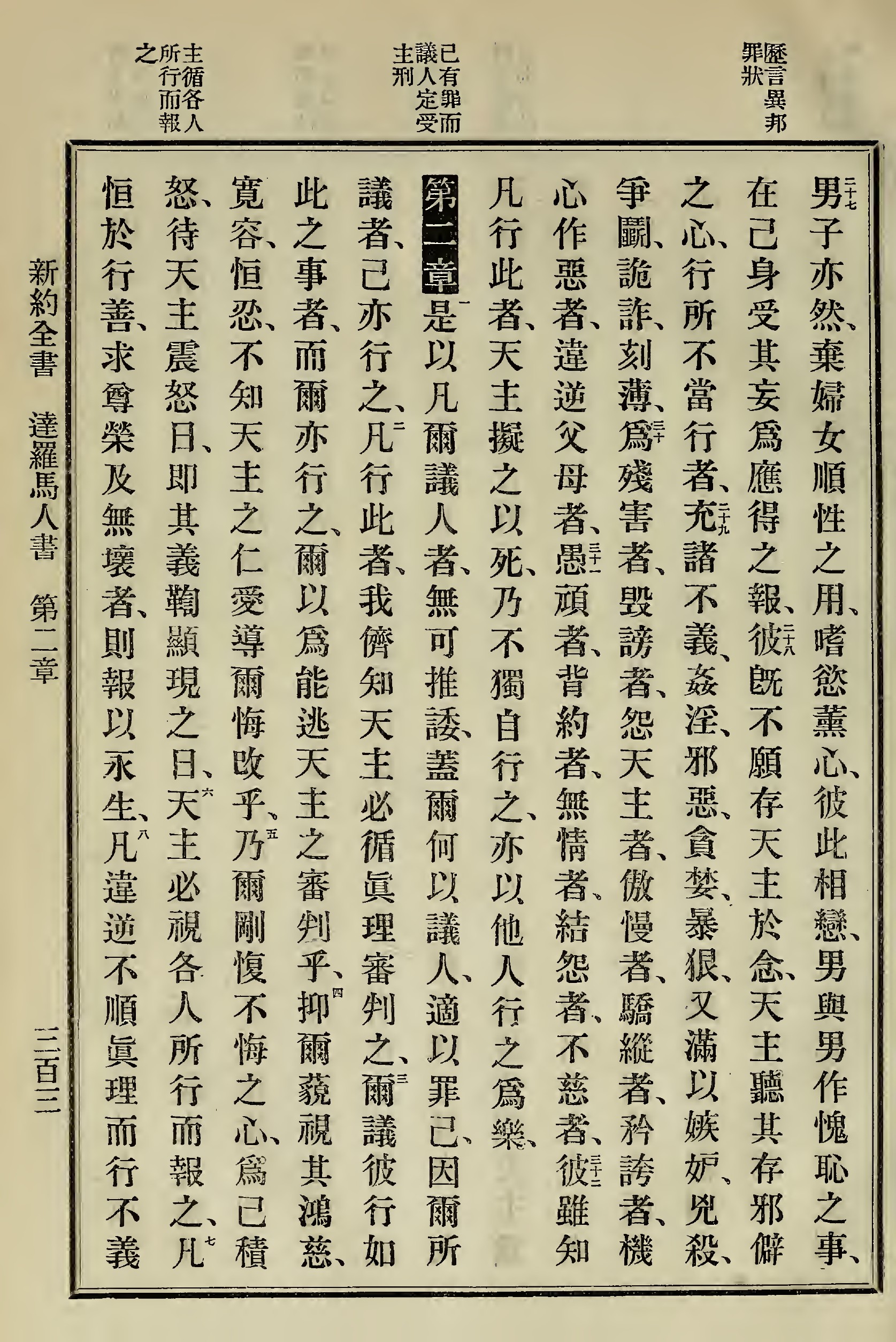 1898年新約全書 羅馬書 1 章 27 節到 2 章 8 節