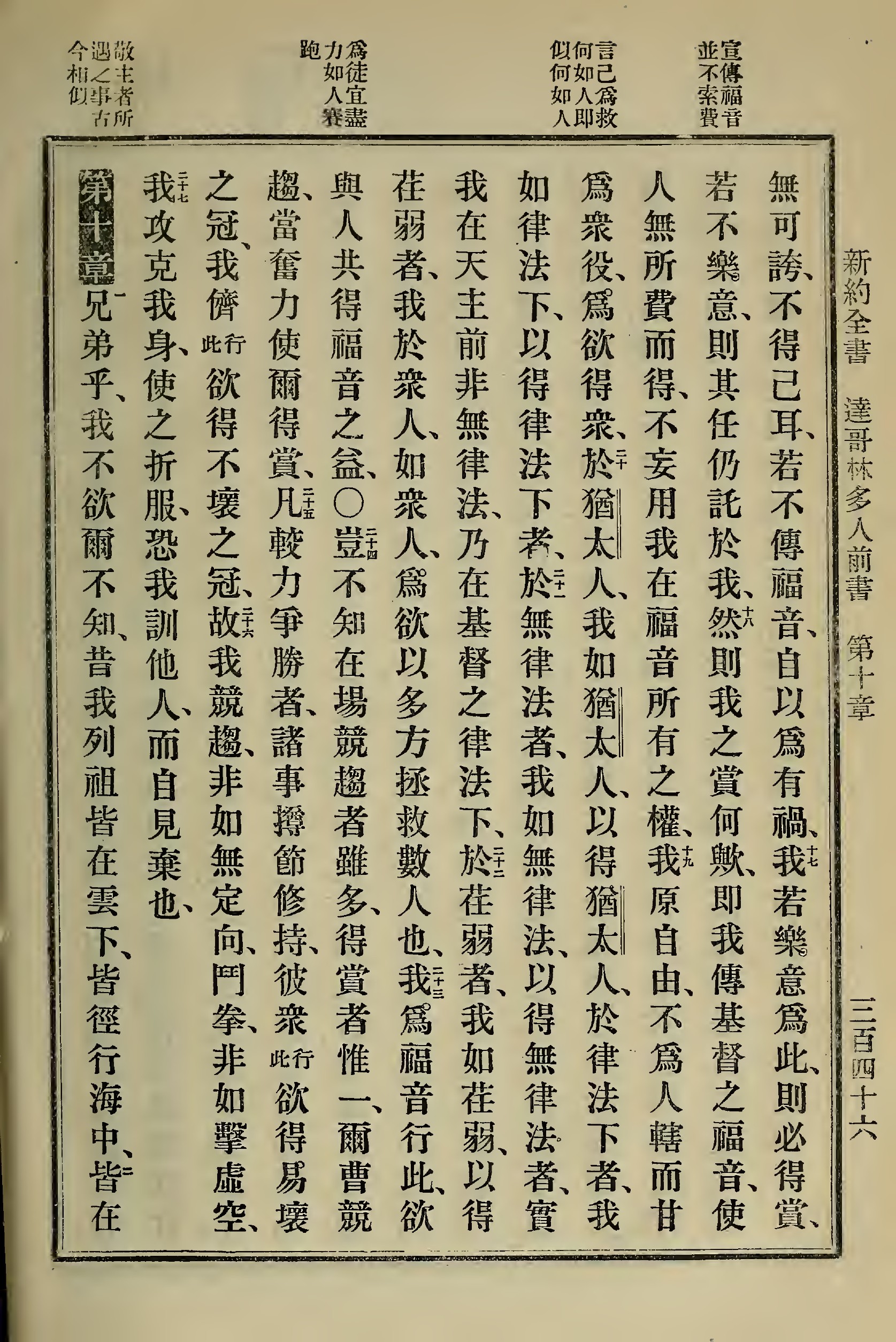 1898年新約全書 哥林多前書 9 章 16 節到 10 章 1 節
