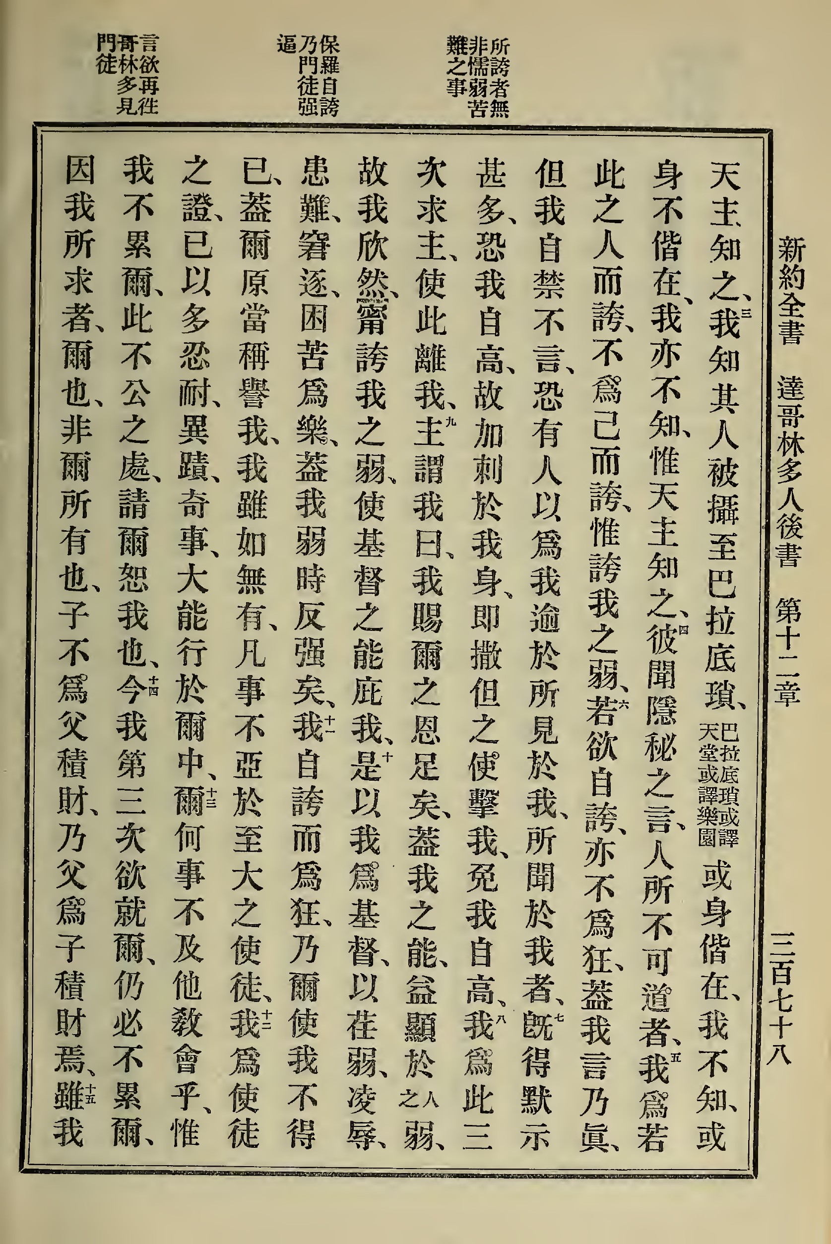 1898年新約全書 哥林多後書 12 章 3 節到 12 章 14 節