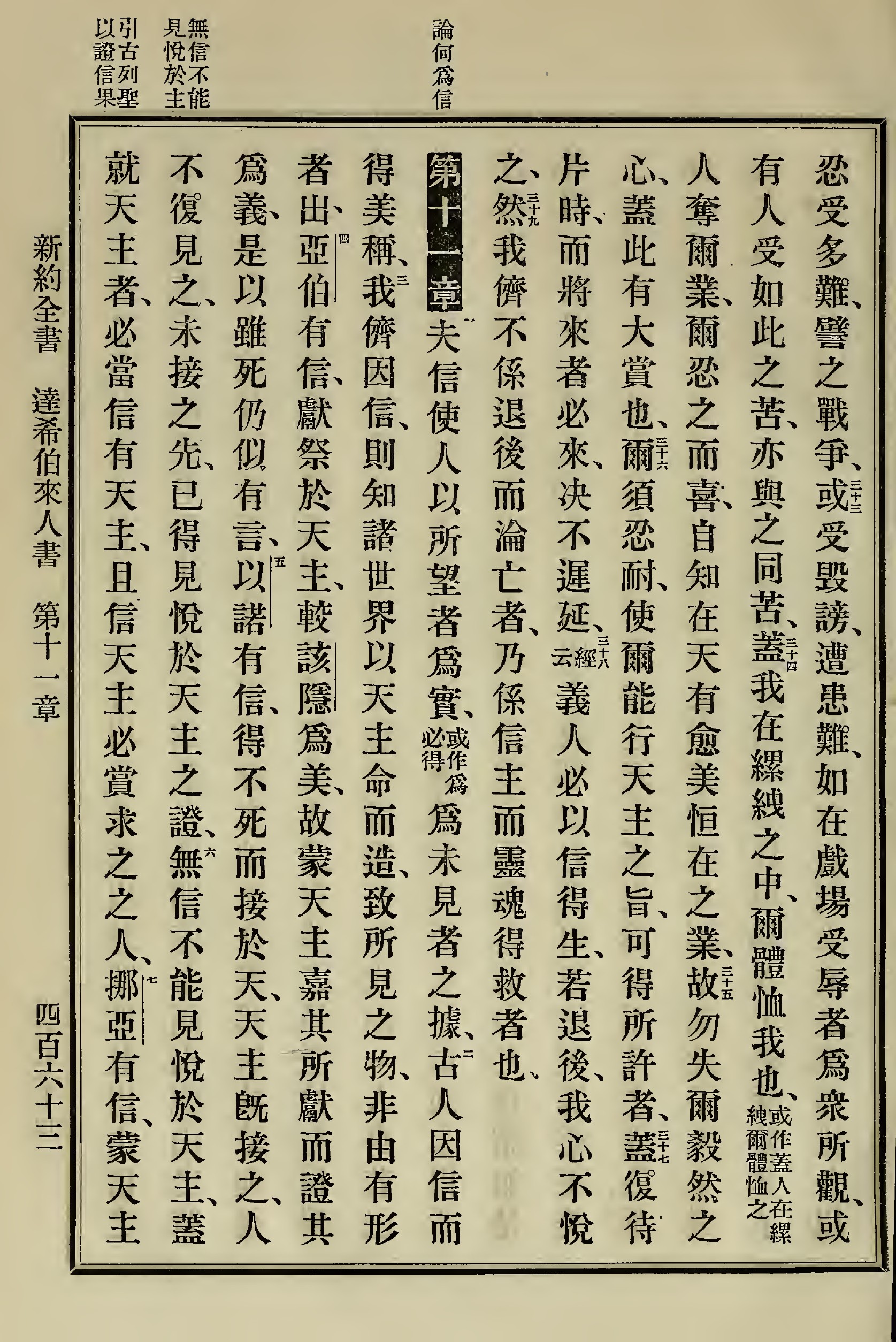 1898年新約全書 希伯來書 10 章 33 節到 11 章 6 節