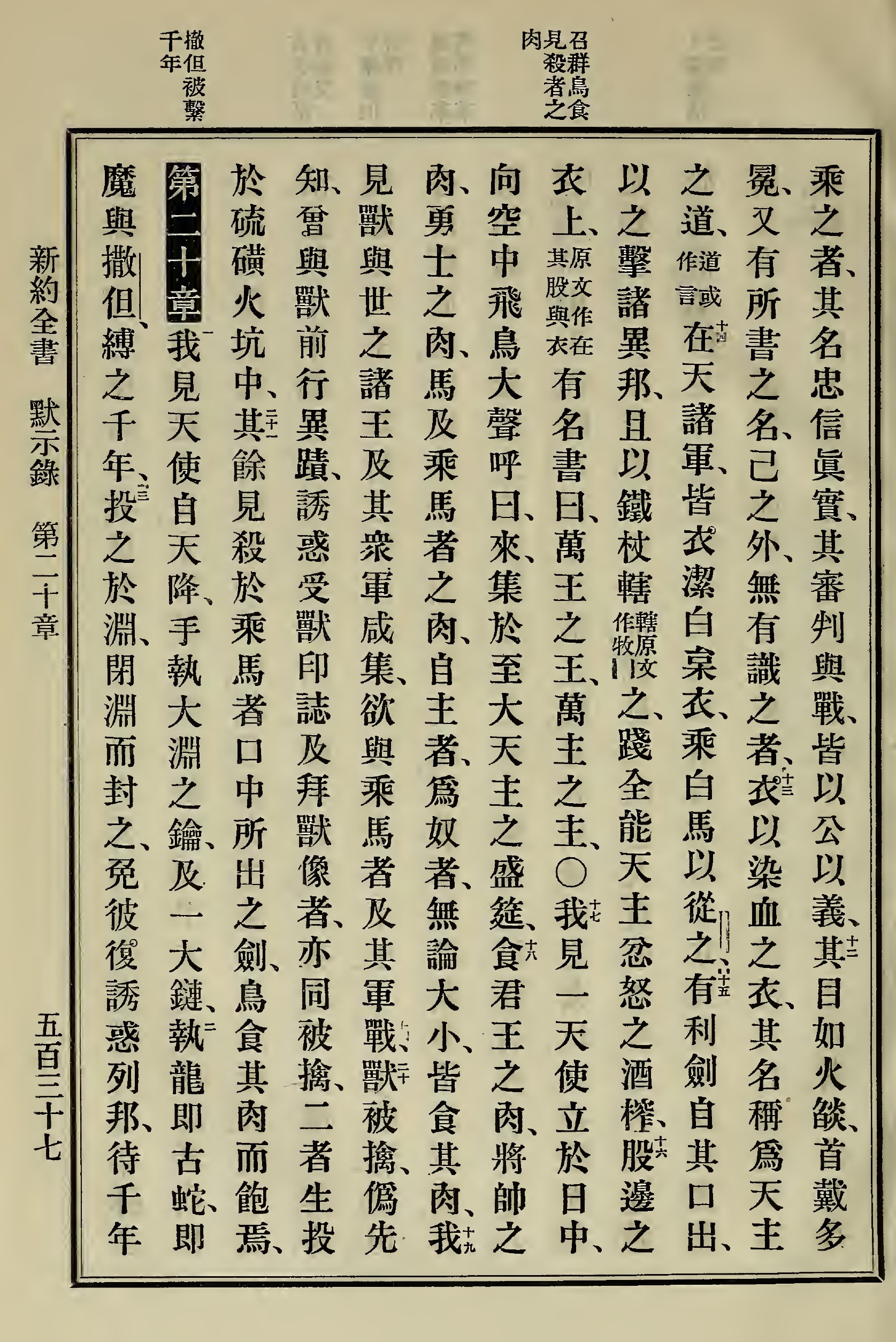 1898年新約全書 啟示錄 19 章 12 節到 20 章 3 節