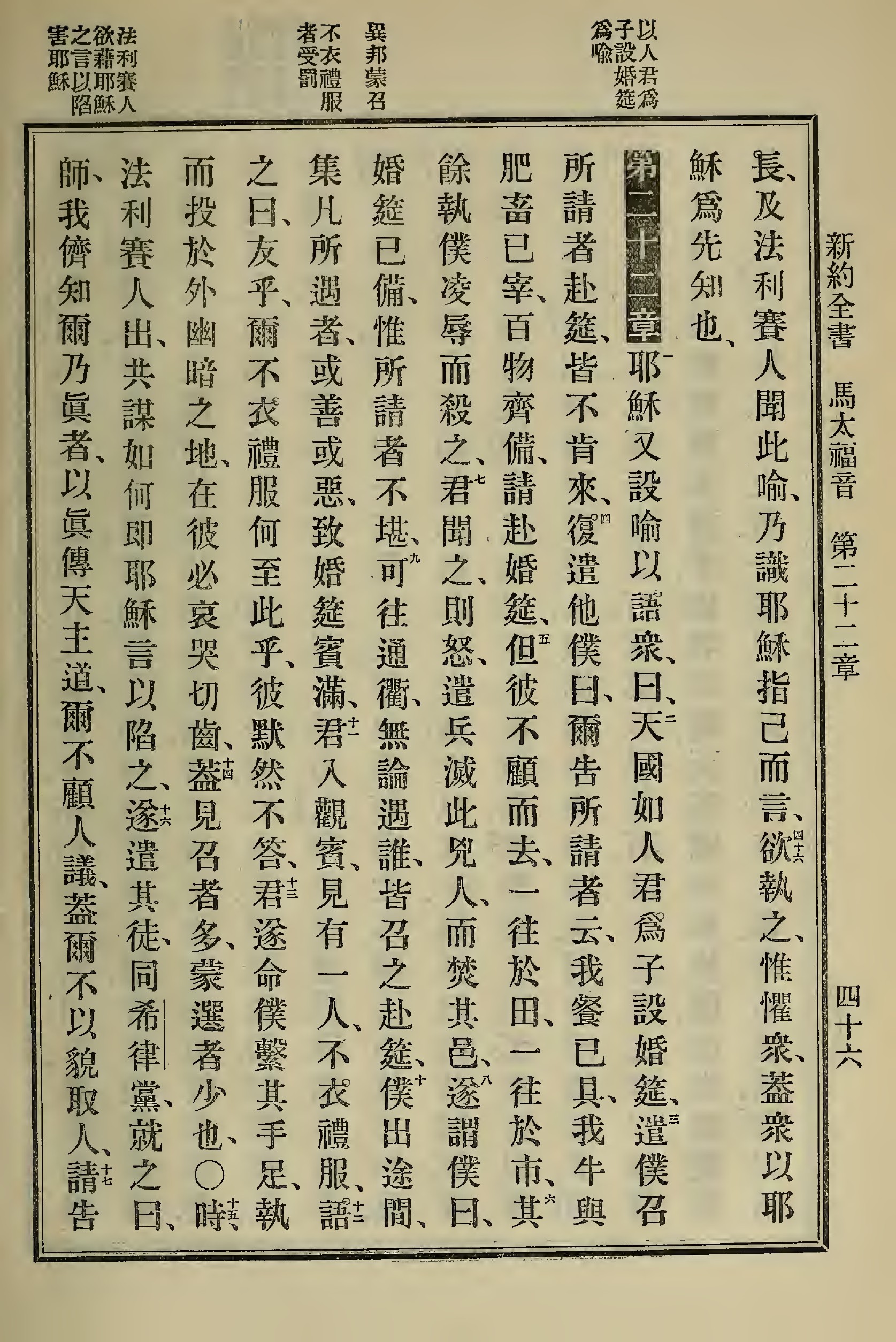1898年新約全書 馬太福音 21 章 45 節到 22 章 16 節