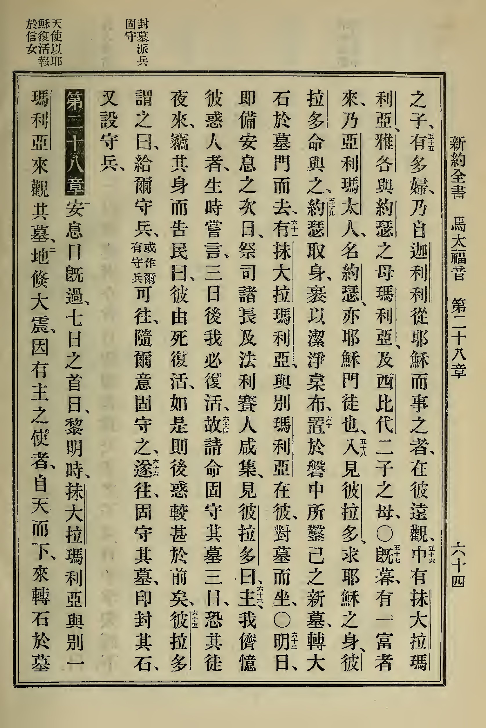 1898年新約全書 馬太福音 27 章 55 節到 28 章 2 節