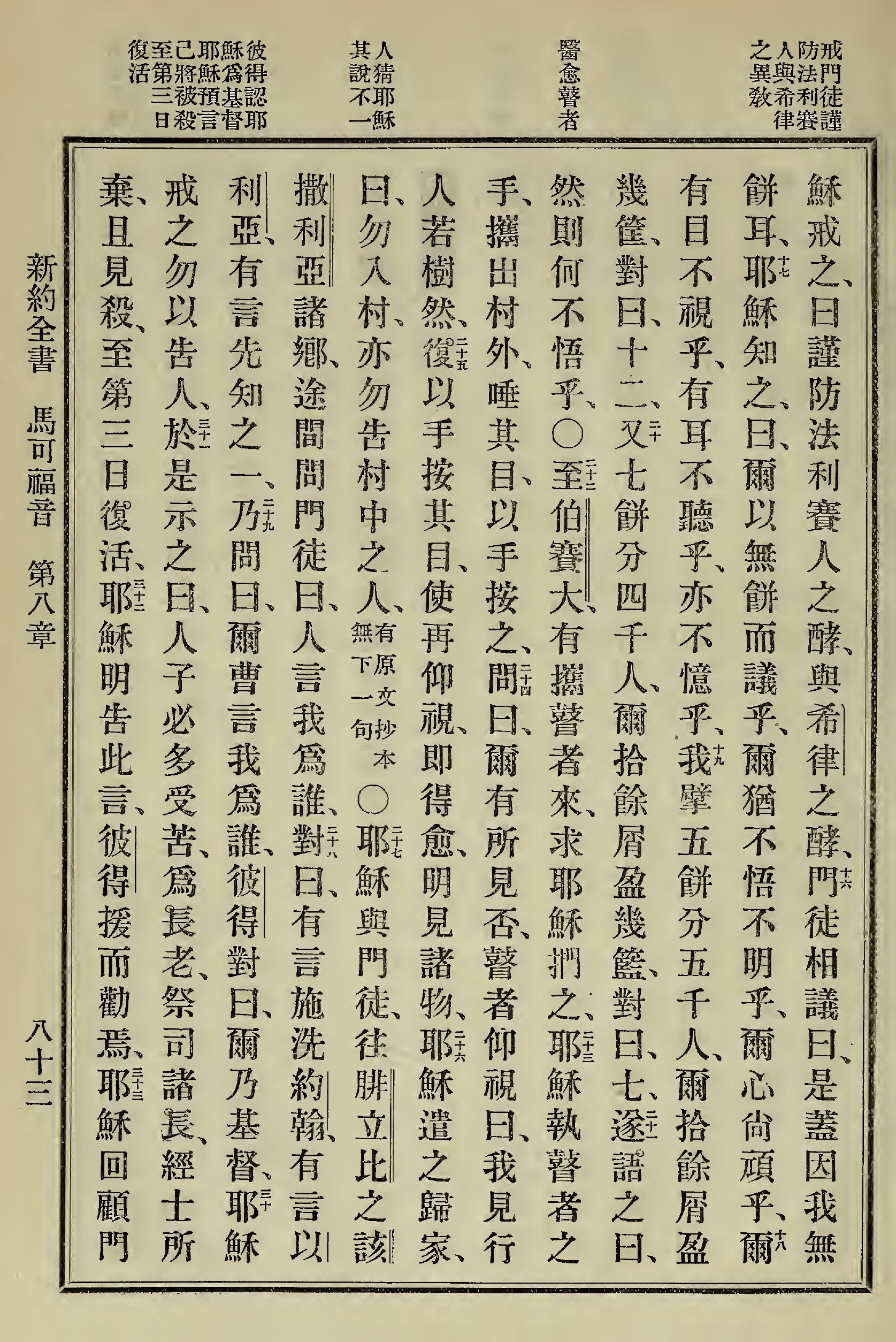 1898年新約全書 馬可福音 8 章 15 節到 8 章 32 節