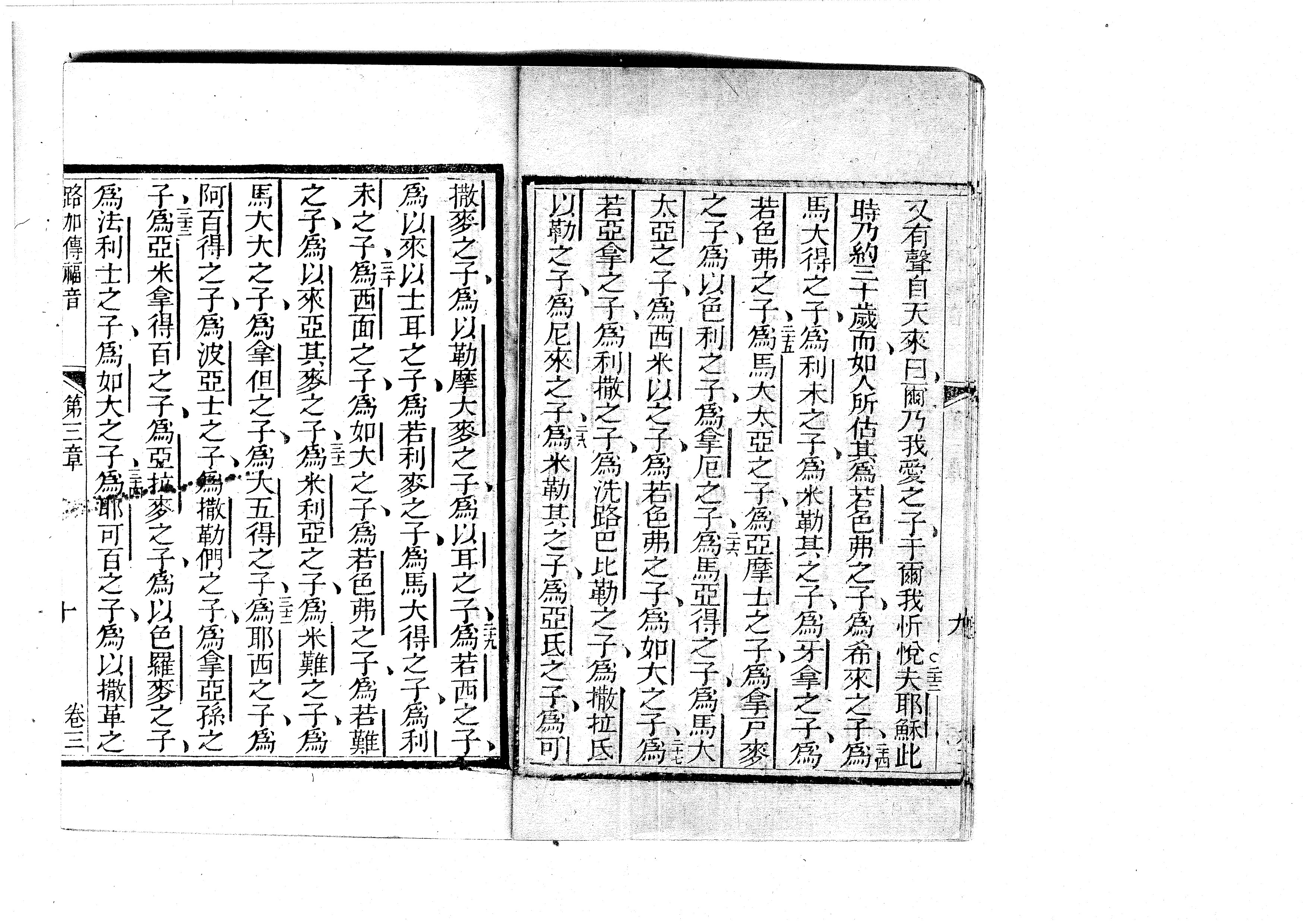 1823年耶穌基利士督我主救者新遺詔書-俱依本言譯出 路加福音 3 章 23 節到 3 章 34 節