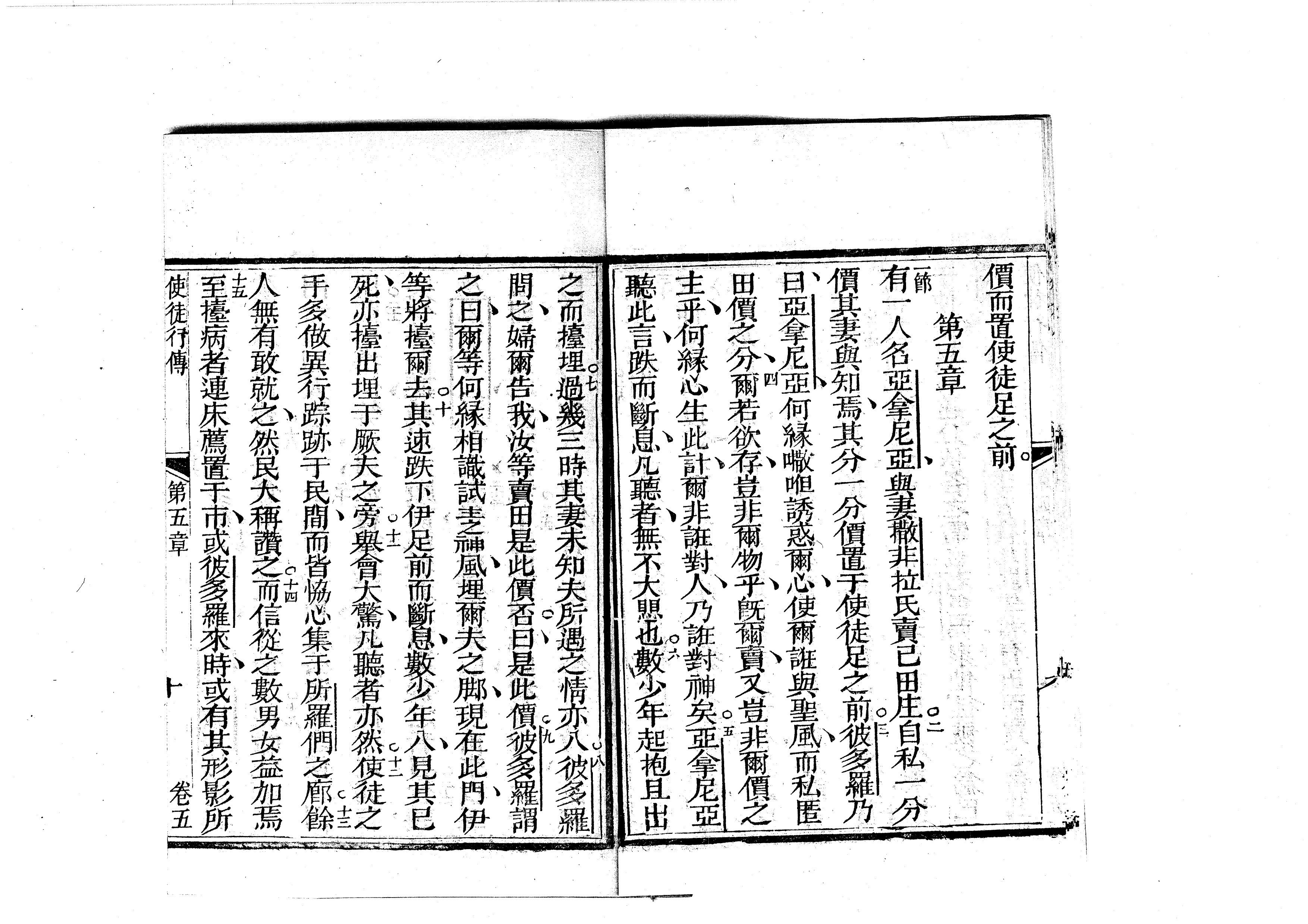 1823年耶穌基利士督我主救者新遺詔書-俱依本言譯出 使徒行傳 5 章 1 節到 5 章 15 節
