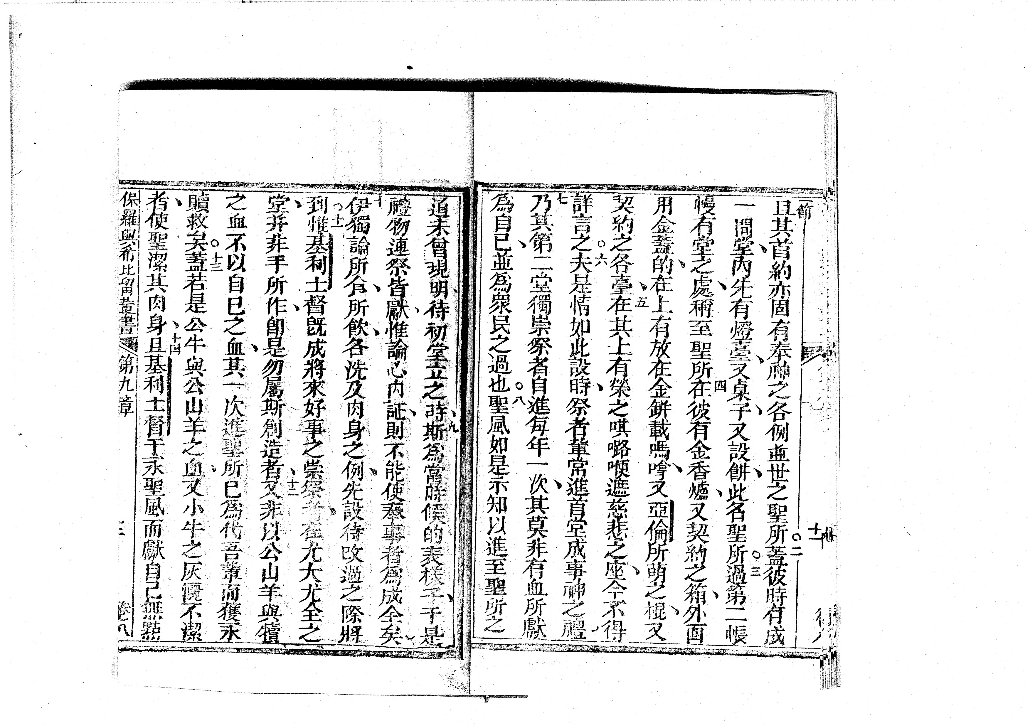 1823年耶穌基利士督我主救者新遺詔書-俱依本言譯出 希伯來書 9 章 1 節到 9 章 14 節