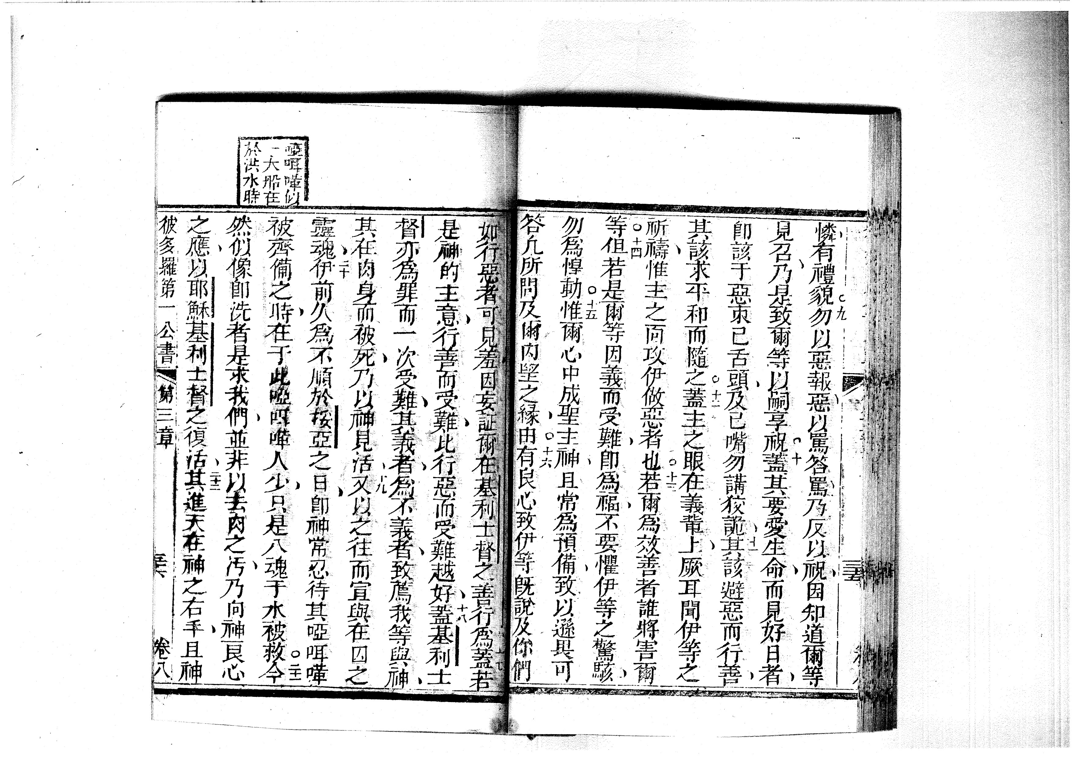 1823年耶穌基利士督我主救者新遺詔書-俱依本言譯出 彼得前書 3 章 9 節到 3 章 22 節