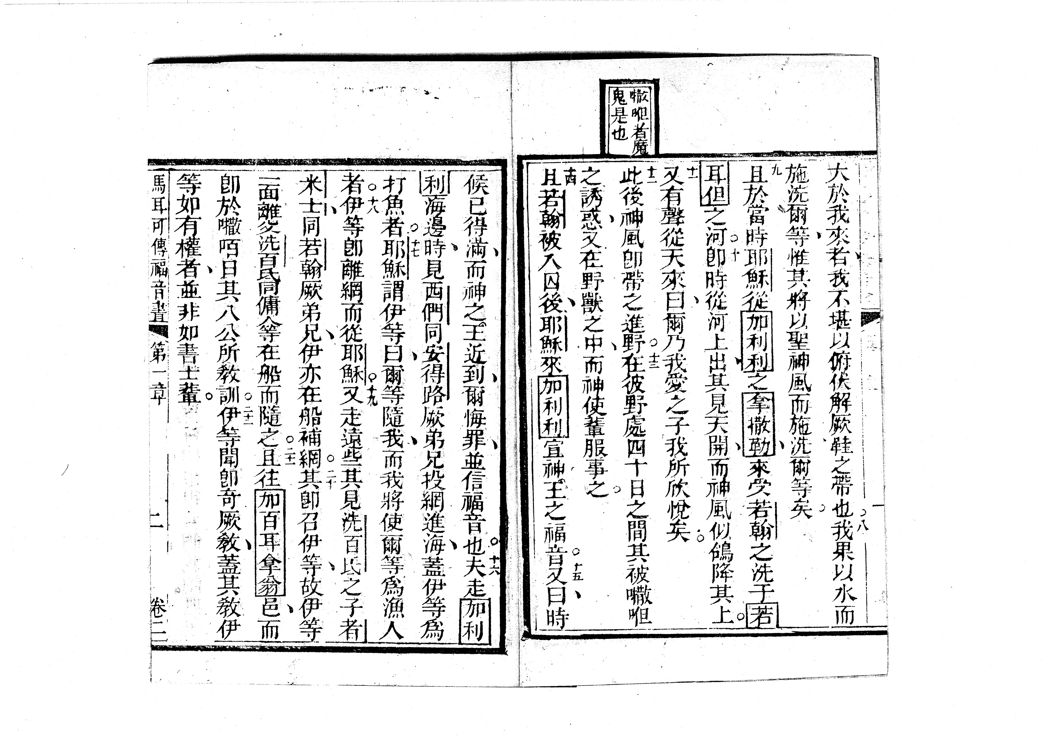 1823年耶穌基利士督我主救者新遺詔書-俱依本言譯出 馬可福音 1 章 8 節到 1 章 22 節