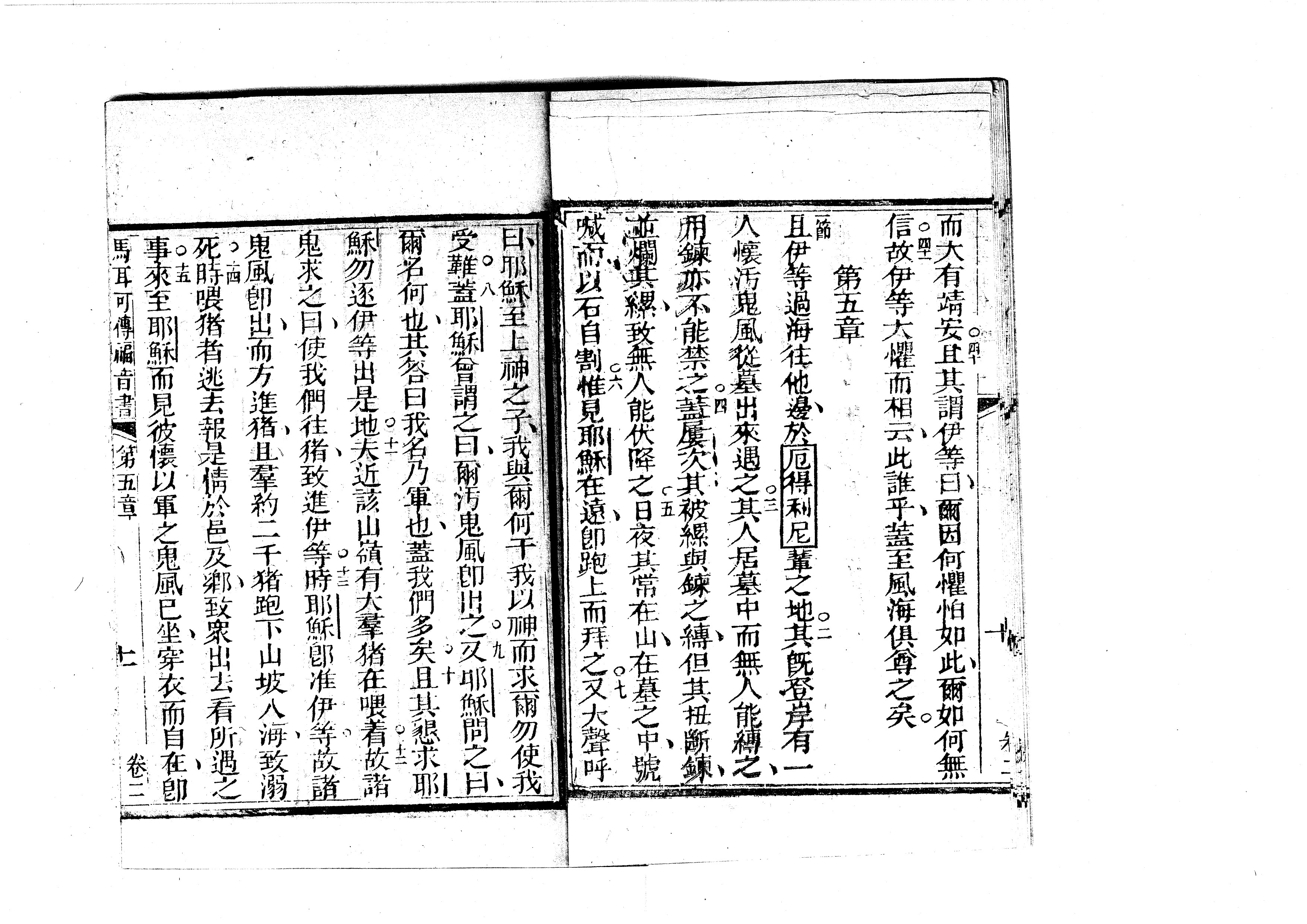 1823年耶穌基利士督我主救者新遺詔書-俱依本言譯出 馬可福音 4 章 40 節到 5 章 15 節