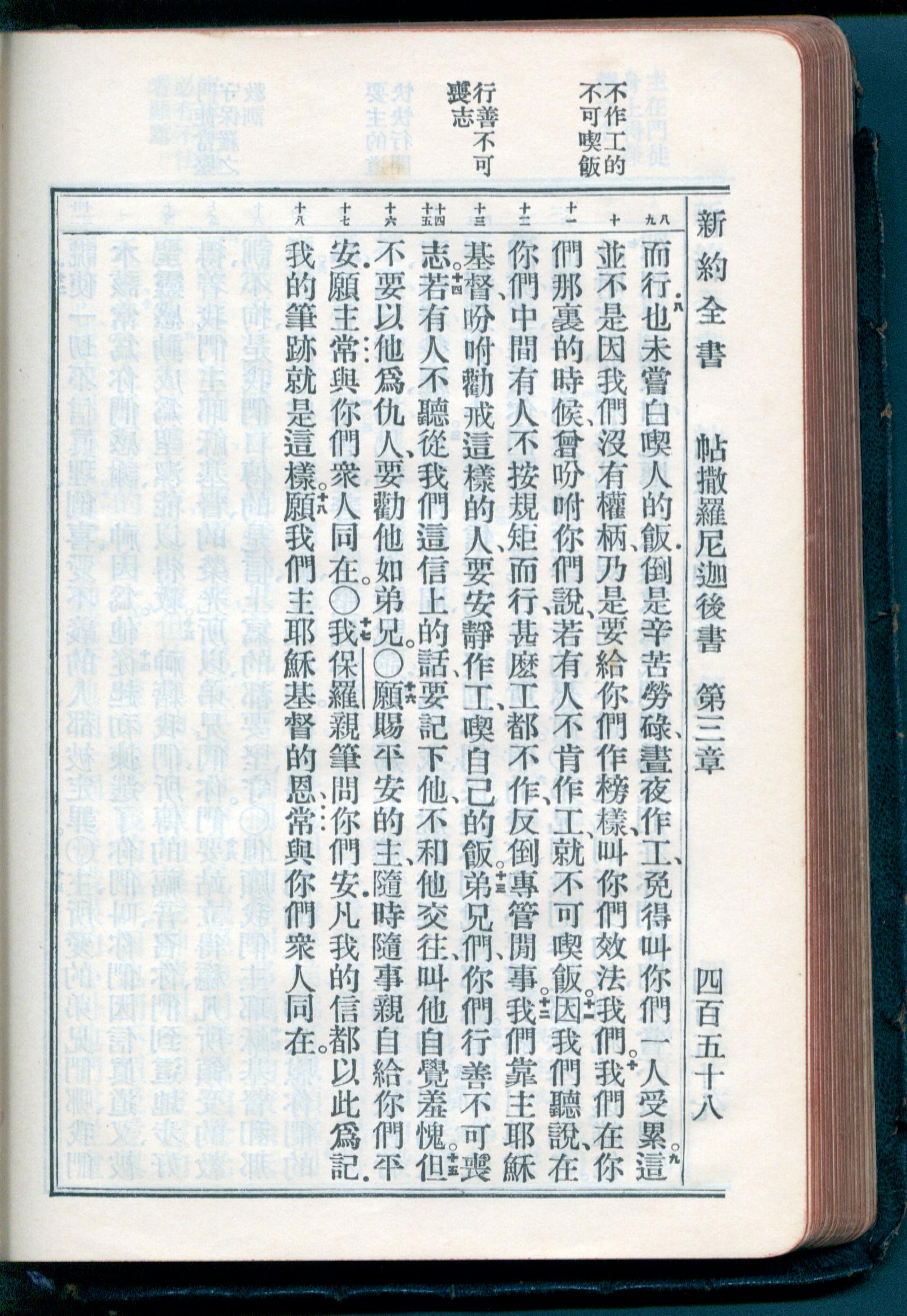 1934年新約全書(官話和合本) 帖撒羅尼迦後書 3 章 8 節到 3 章 18 節