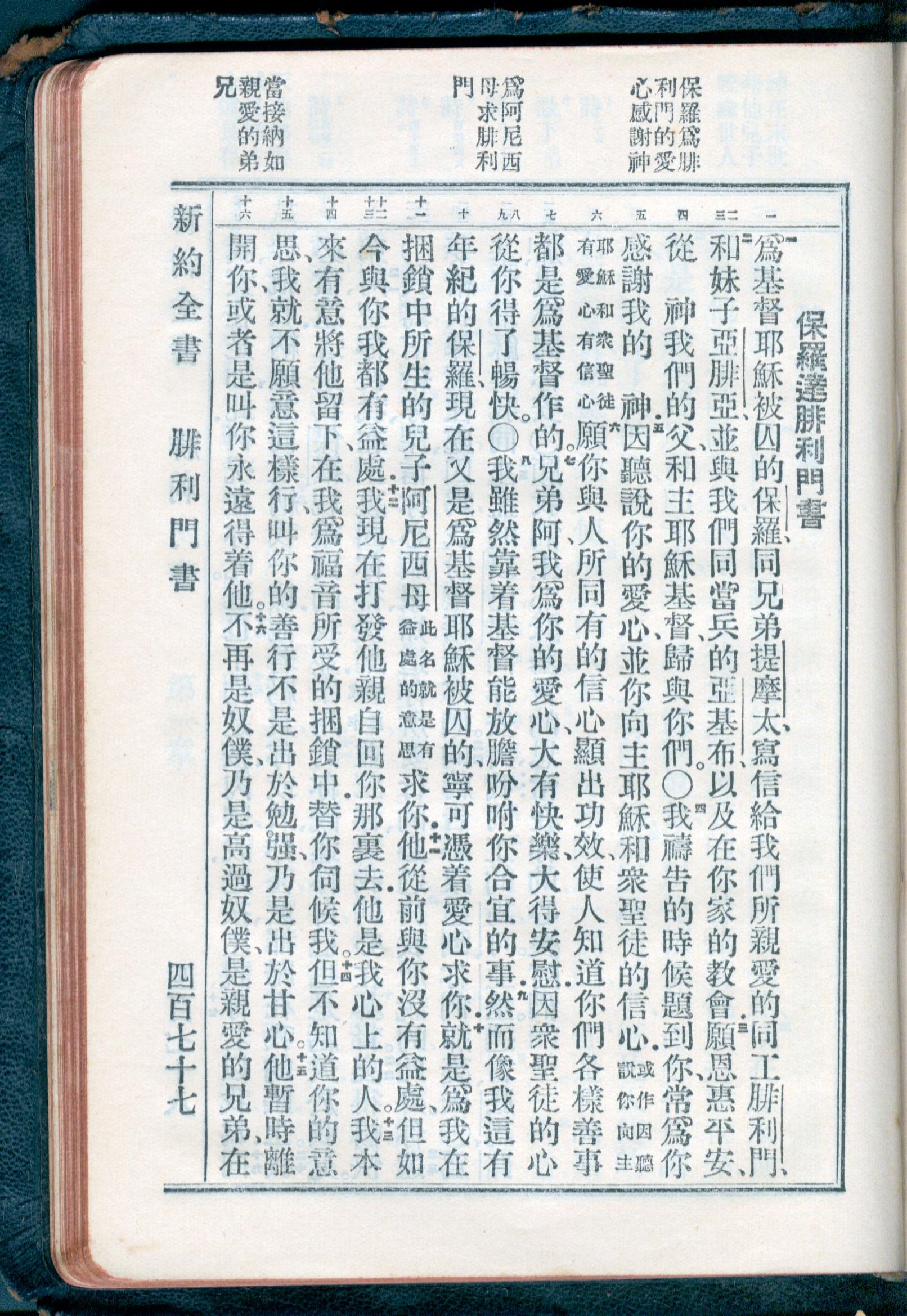 1934年新約全書(官話和合本) 腓利門書 1 章 1 節到 1 章 16 節