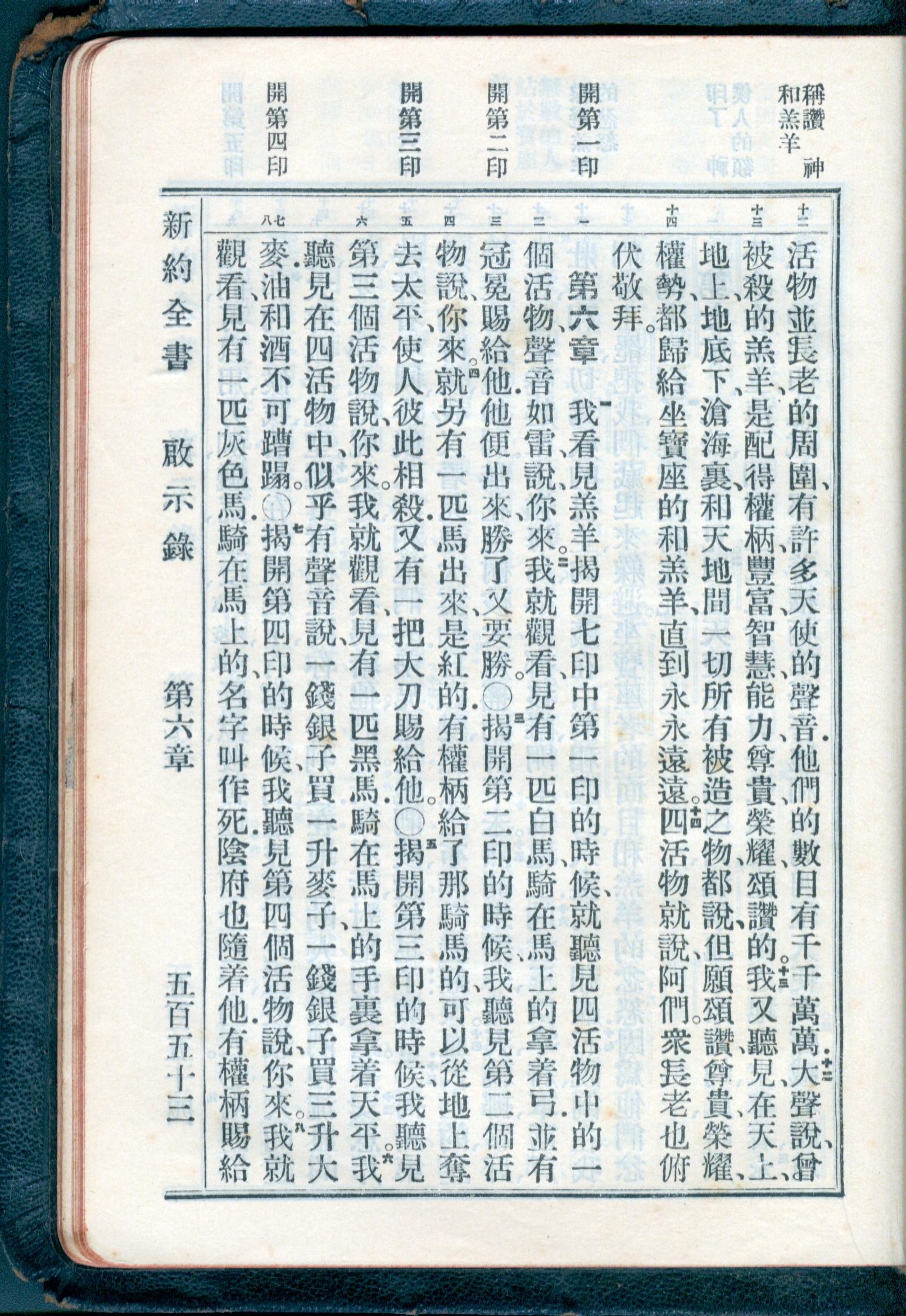 1934年新約全書(官話和合本) 啟示錄 5 章 12 節到 6 章 8 節